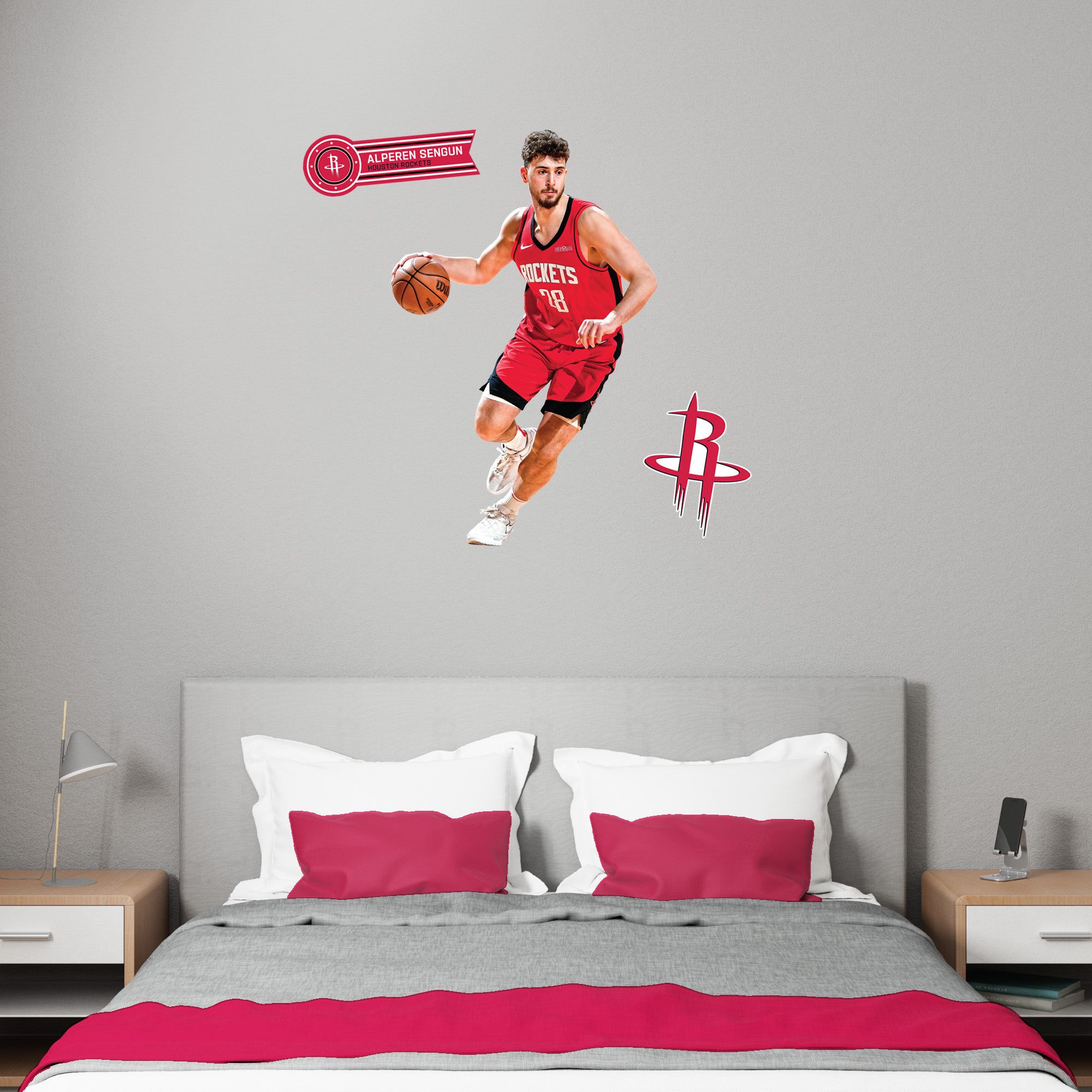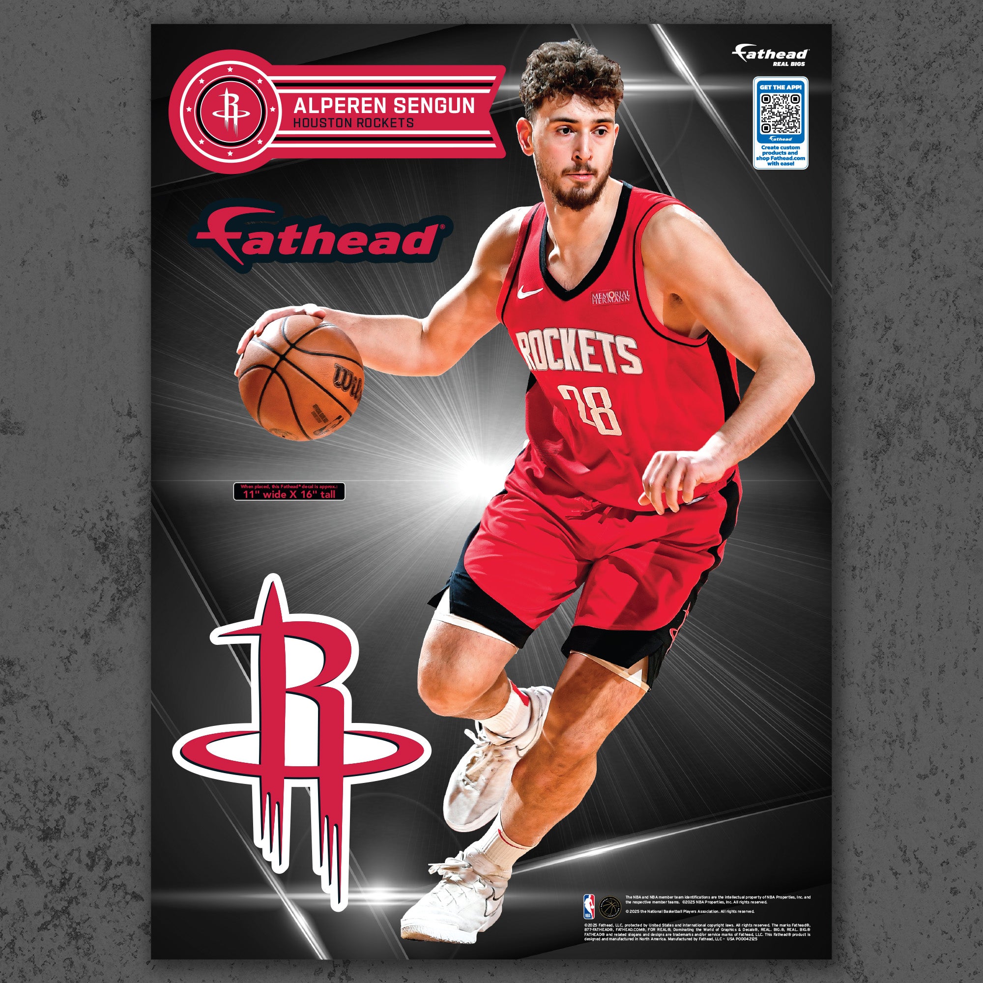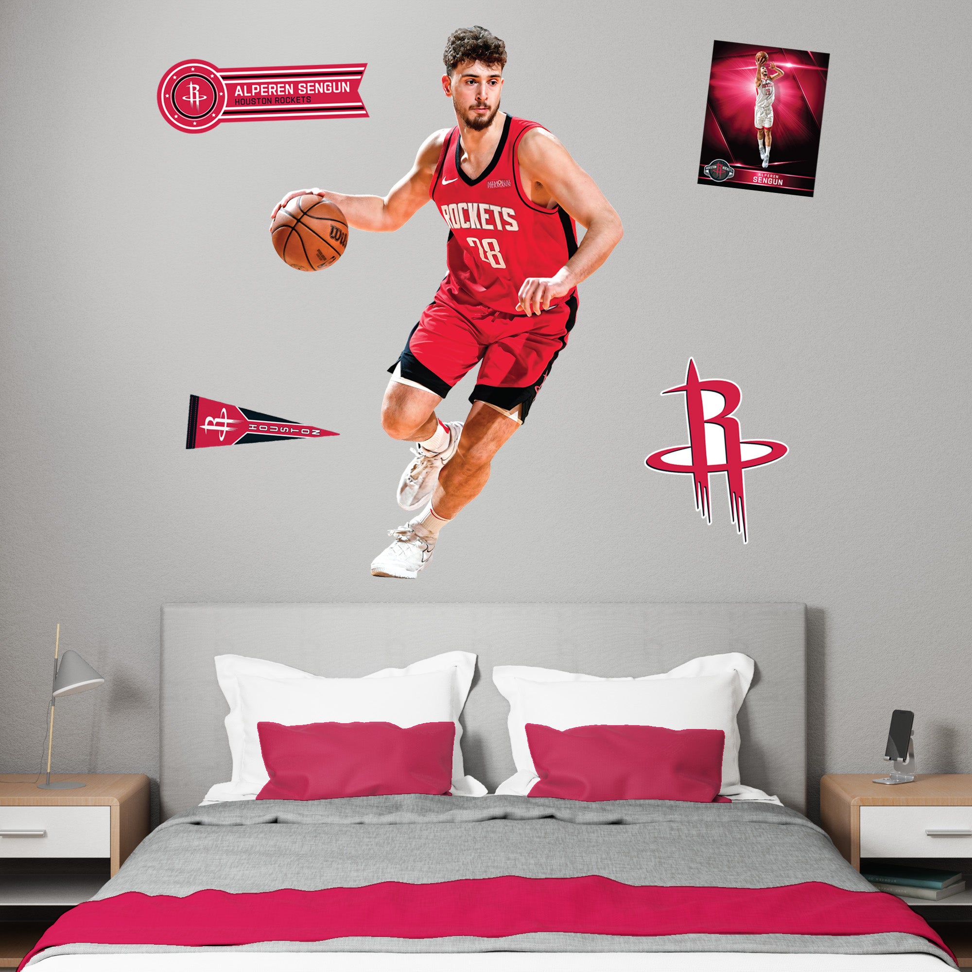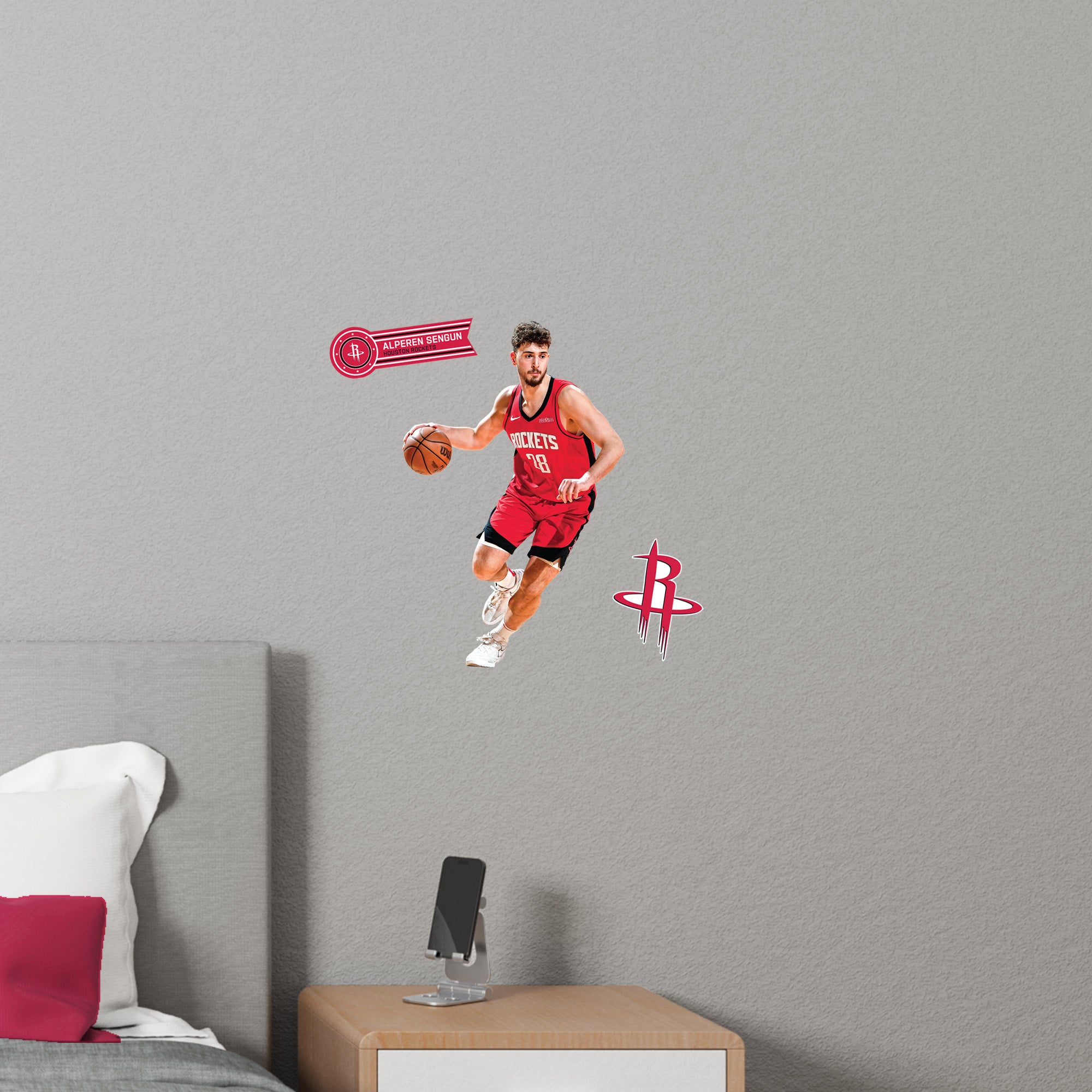 Elevate your fan cave with the Alperen Sengun RealBig Collection wall decals, officially licensed by the NBA. Featuring vibrant, fade-resistant colors, these durable vinyl decals bring the energy of the Houston Rockets to your walls. Easy to apply and remove, they let you showcase your team spirit without commitment, transforming any room into a dynamic display of loyalty and excitement.
