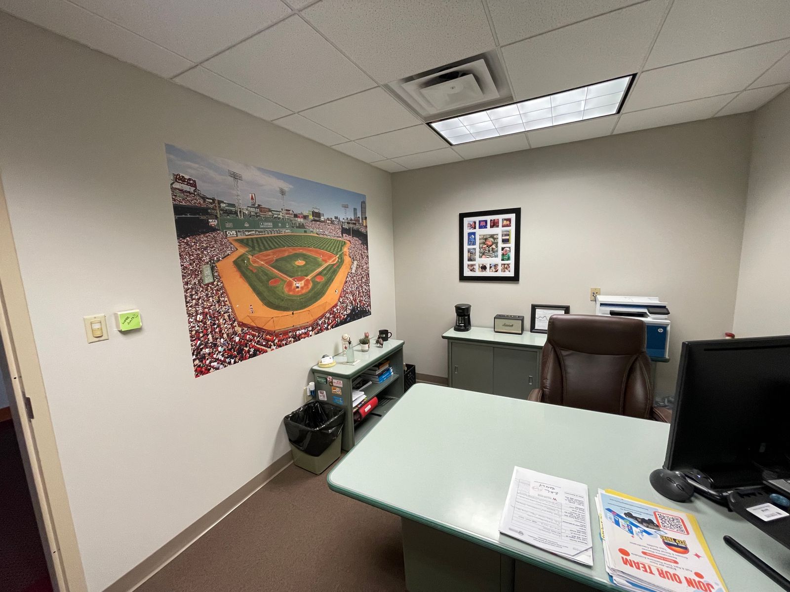 4. STICK one corner of your Fathead to the wall with minimal pressure and apply outwards from there. If you make a mistake, you can unpeel and try again.