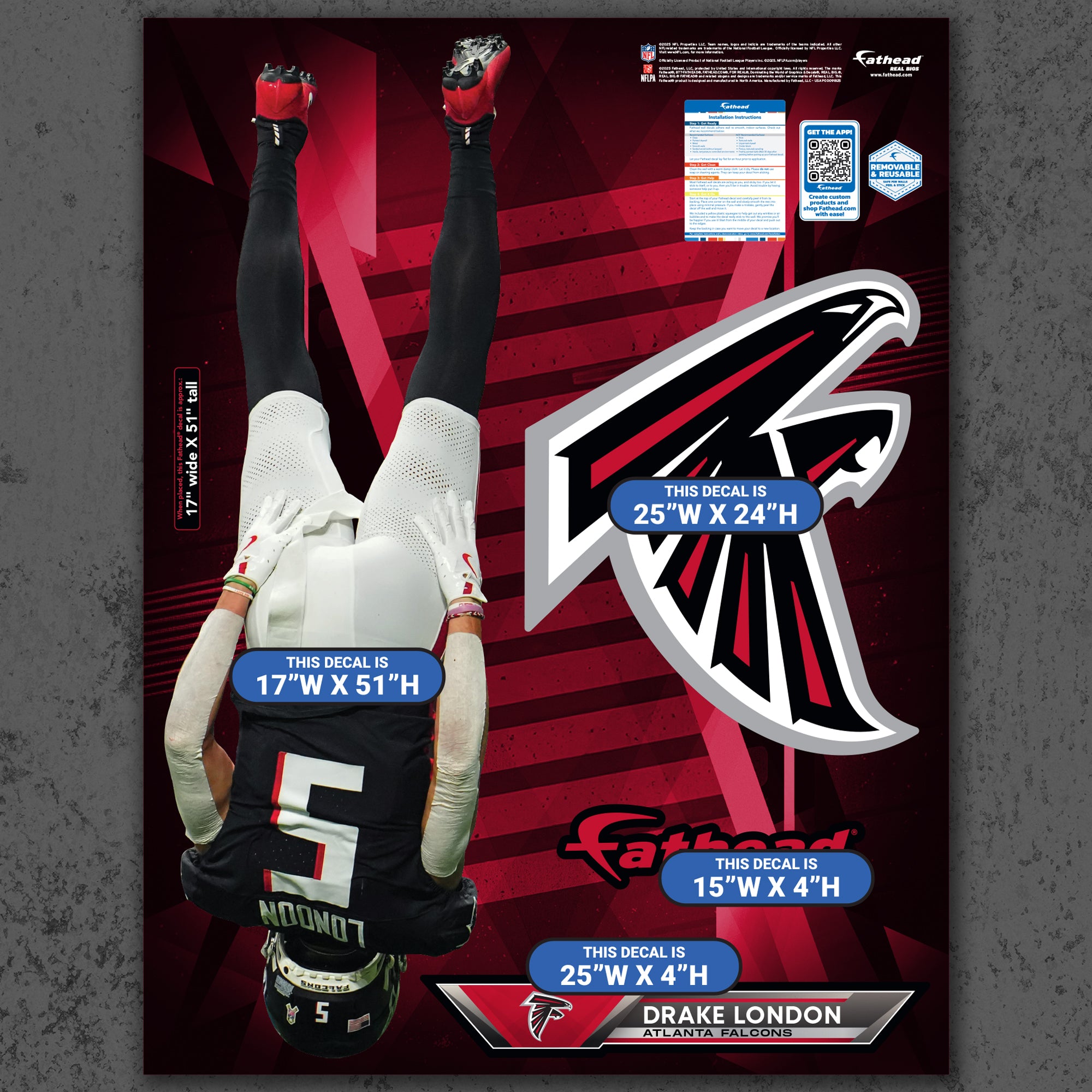 Official NFL Atlanta Falcons Reusable Vinyl Wall Decals