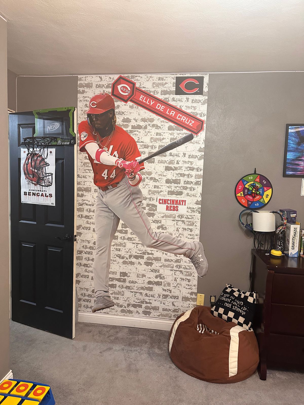 This was a Christmas gift for my 7 year old who is the biggest Elly De La Cruz fan. He was so excited that his whole face lit up, he says it was his favorite gift this year! My husband and I were a little worried about sticking the decal to our textured walls so I bought a panel that looks like brick from Lowe’s. We hung the panel and applied the decal to it. It looks so cool and made a little boy very happy!