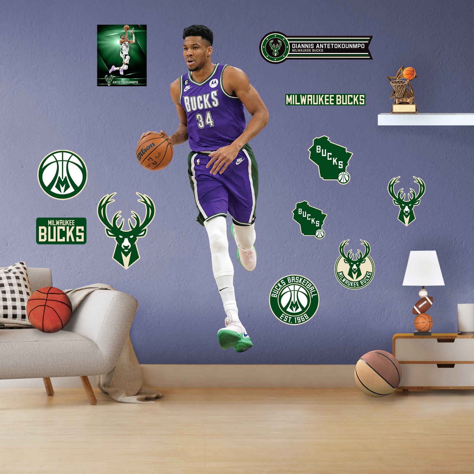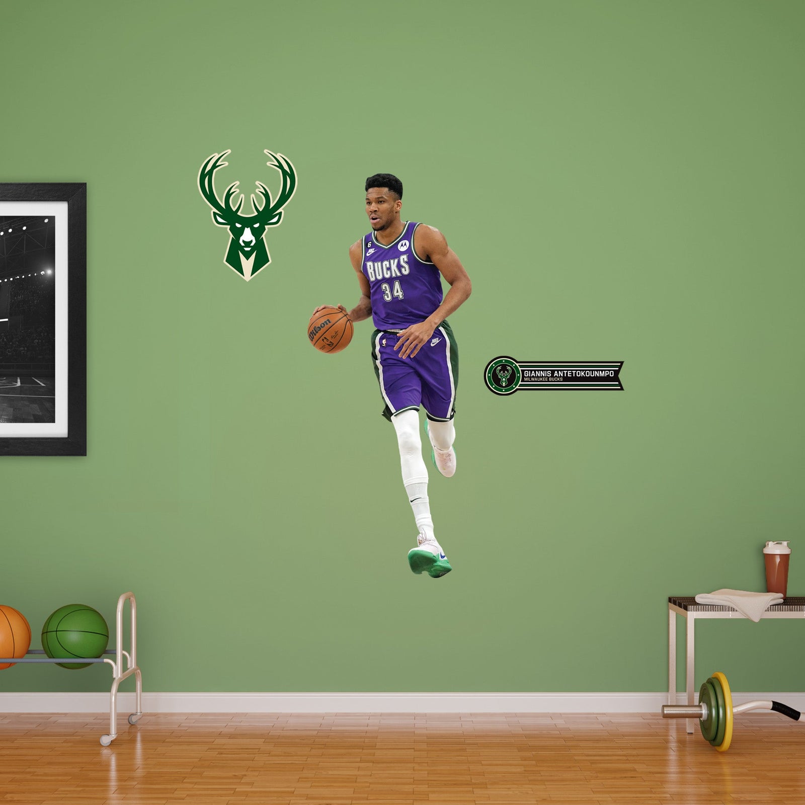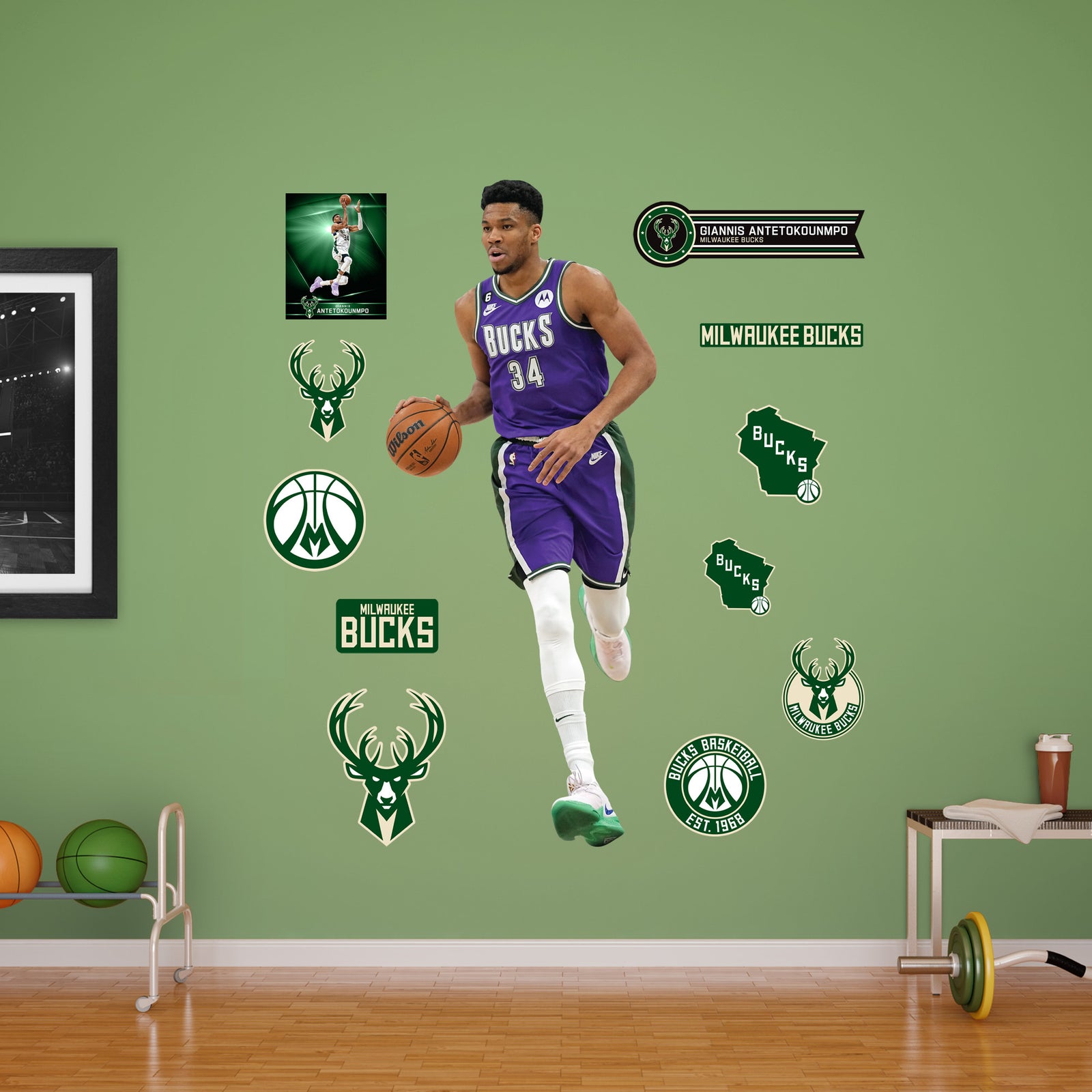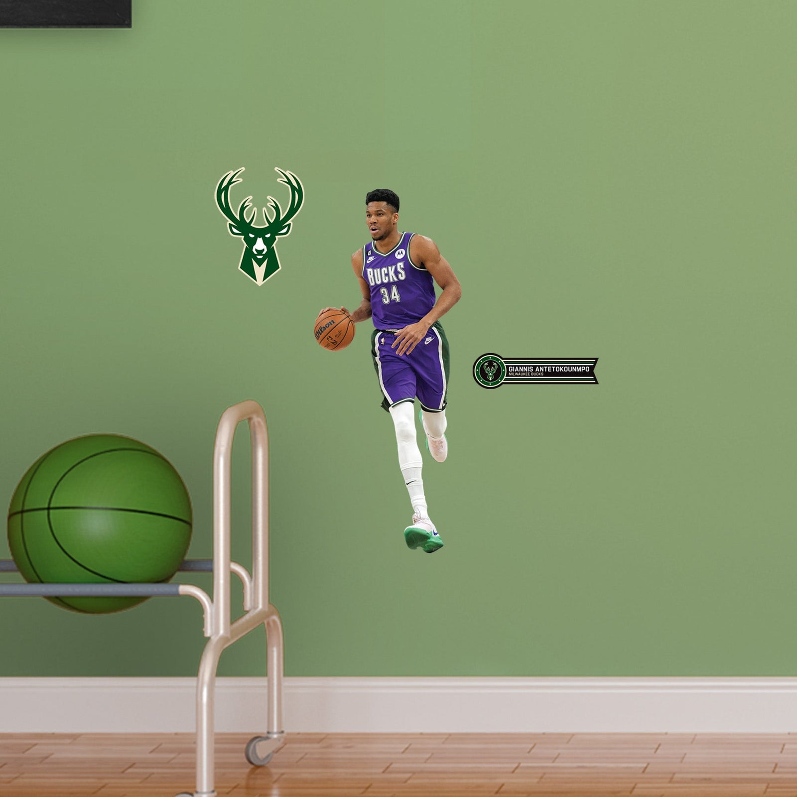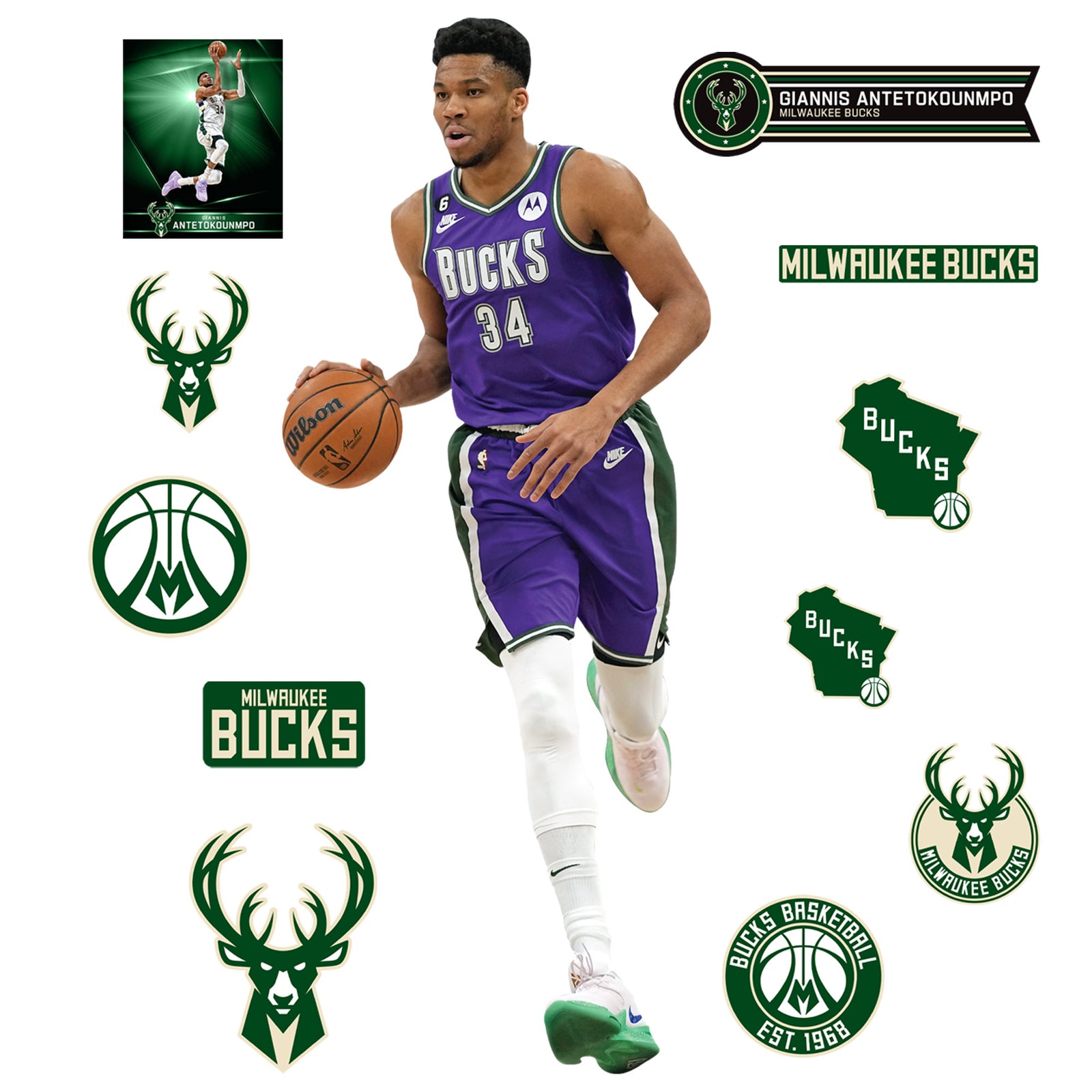 Official NBA Milwaukee Bucks Reusable Vinyl Wall Decals