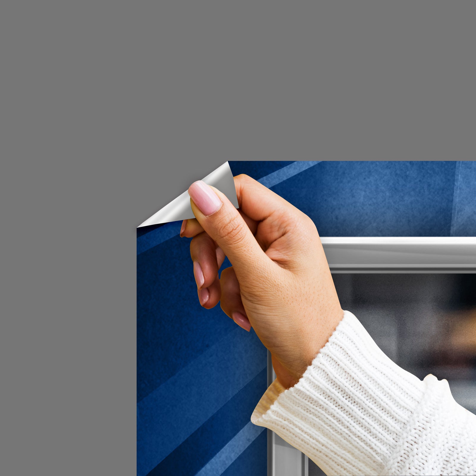3. PEEL with the help of a friend from the top down. Slowly peel away from backing without letting the Fathead stick to itself.