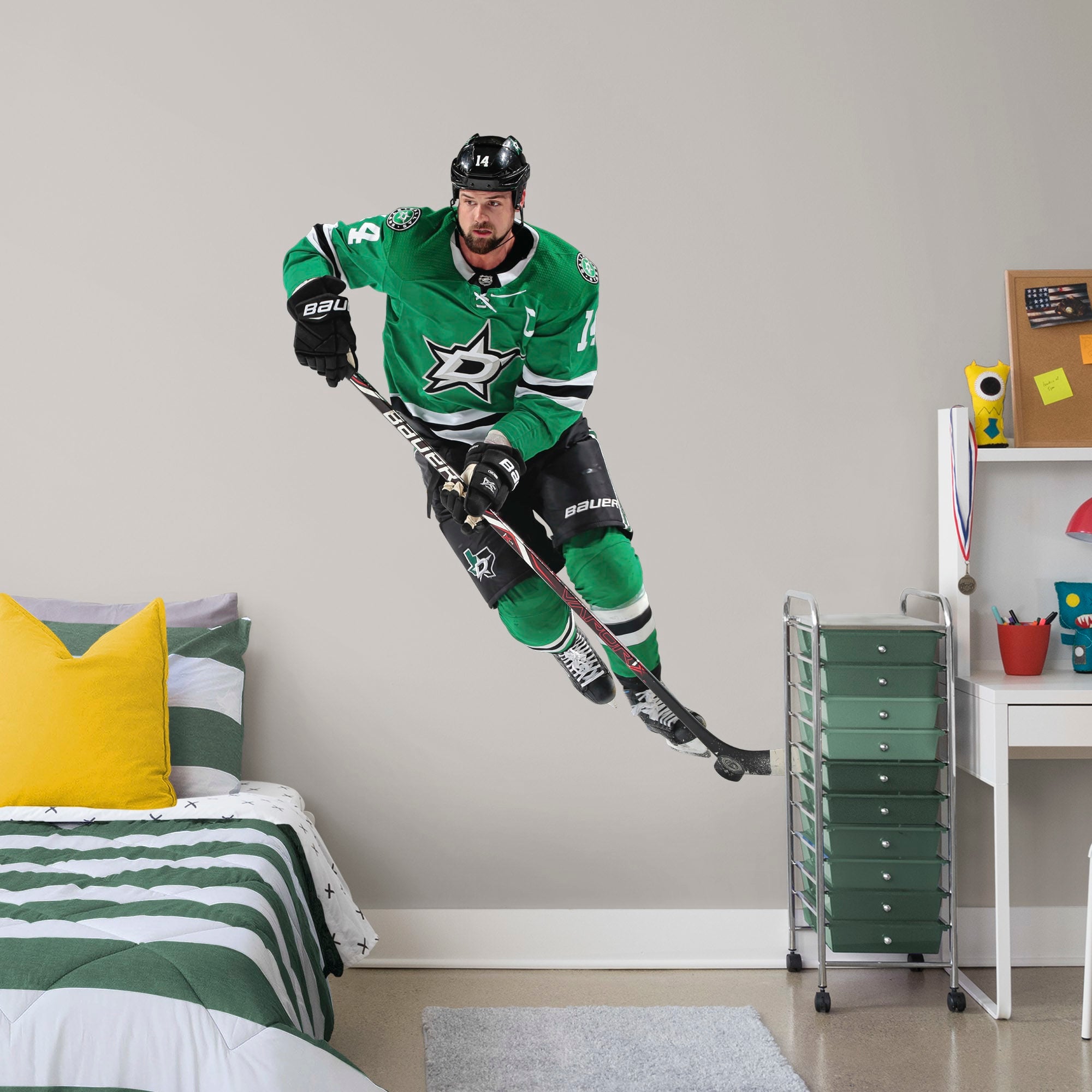 I just love my Jamie Benn Fathead! He looks awesome on my wall. I'm a huge Stars fan and I needed this for my bedroom. The graphics of him look accurate in his details and that makes me very happy with my purchase!