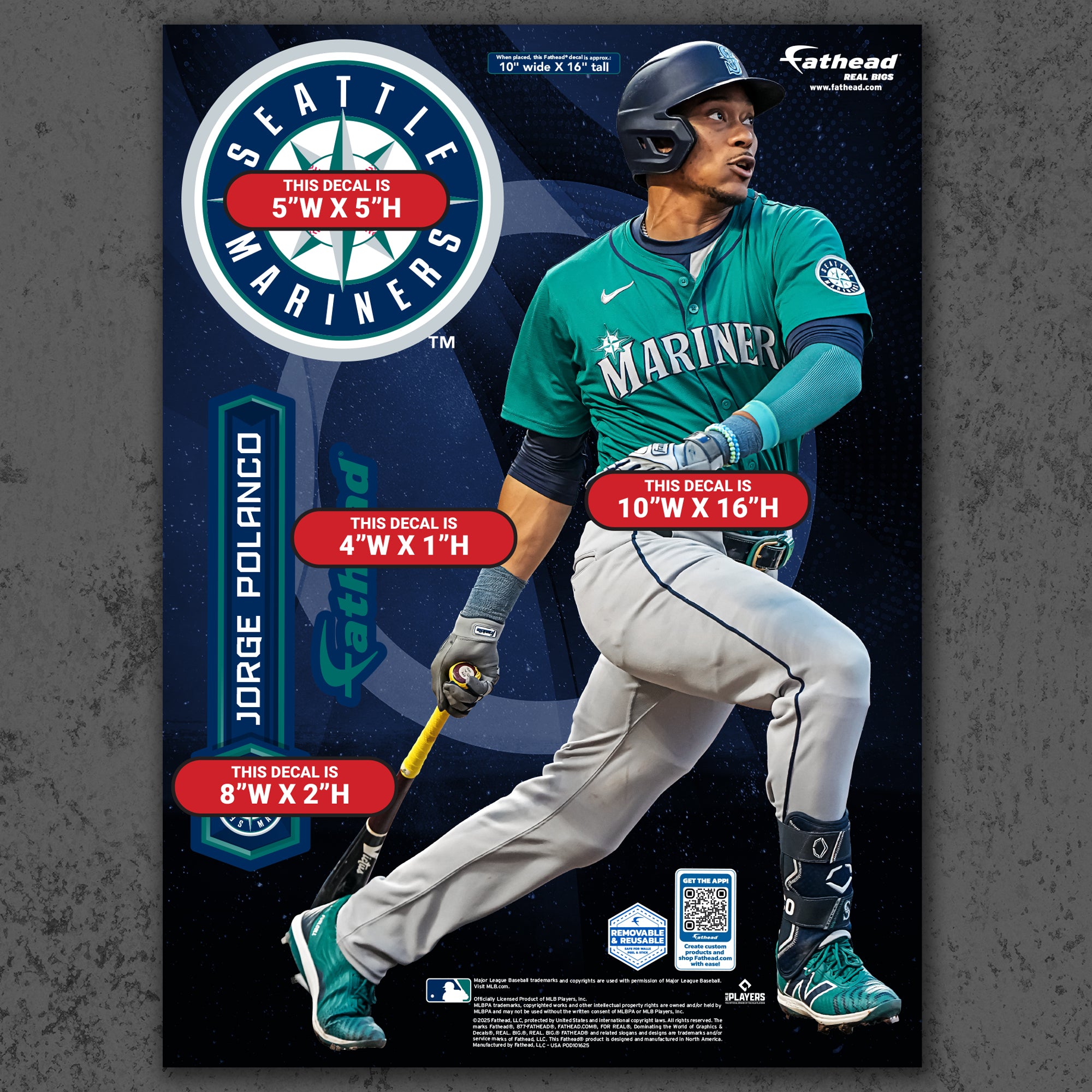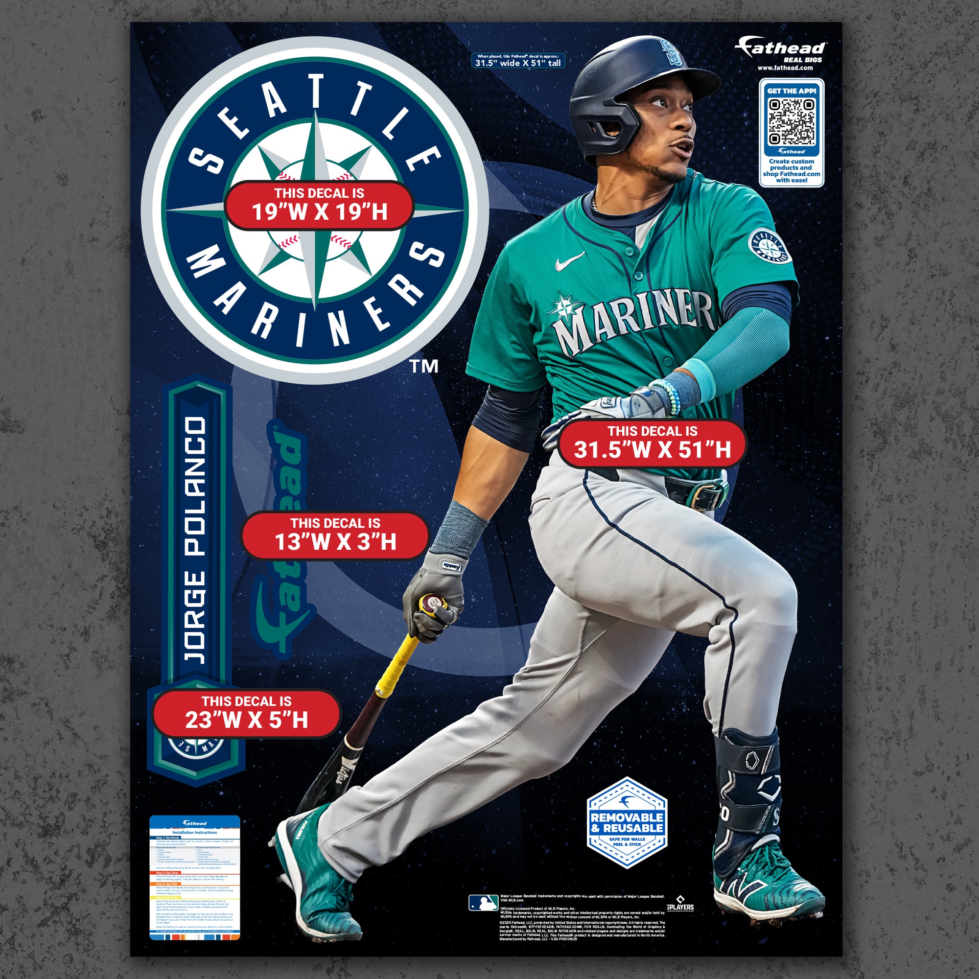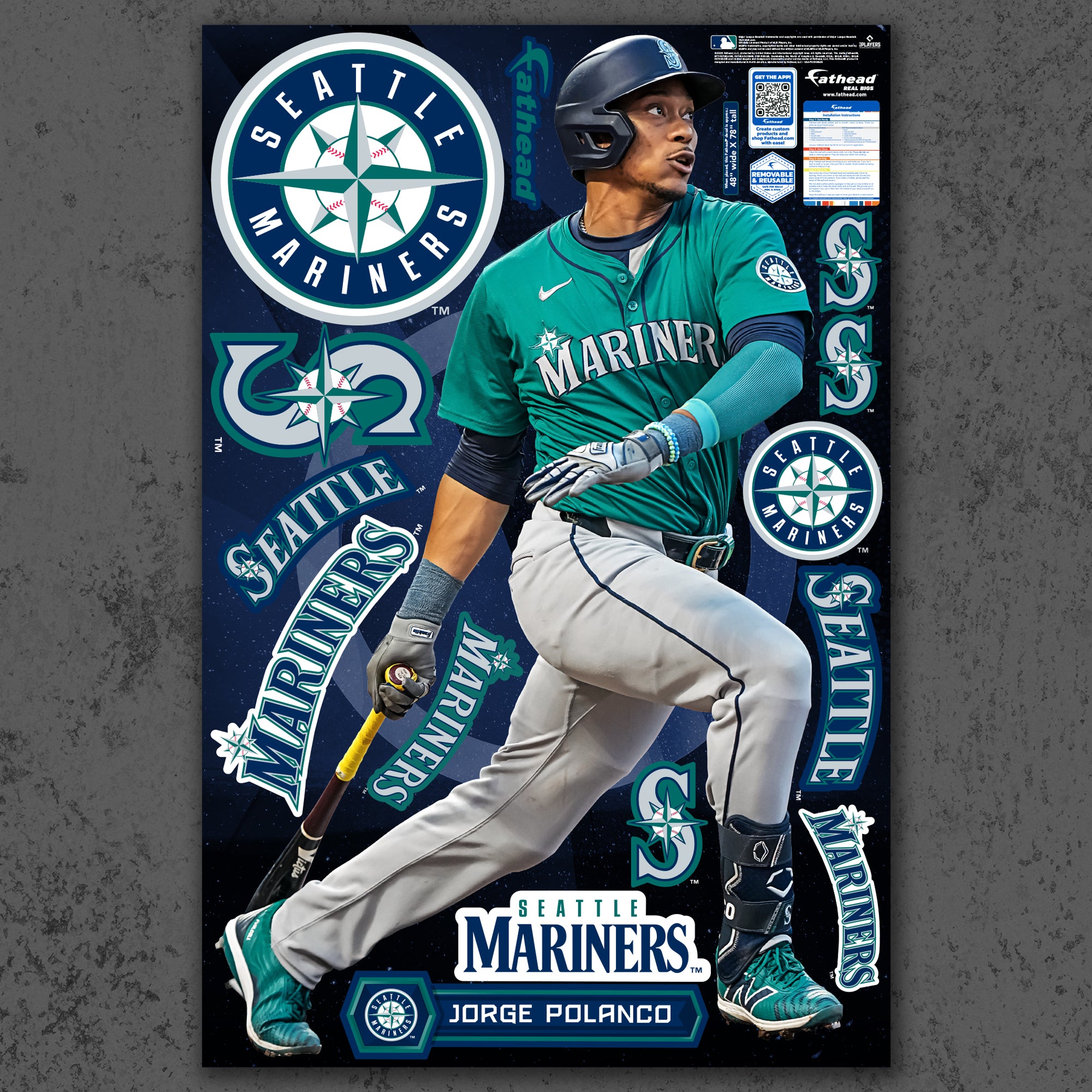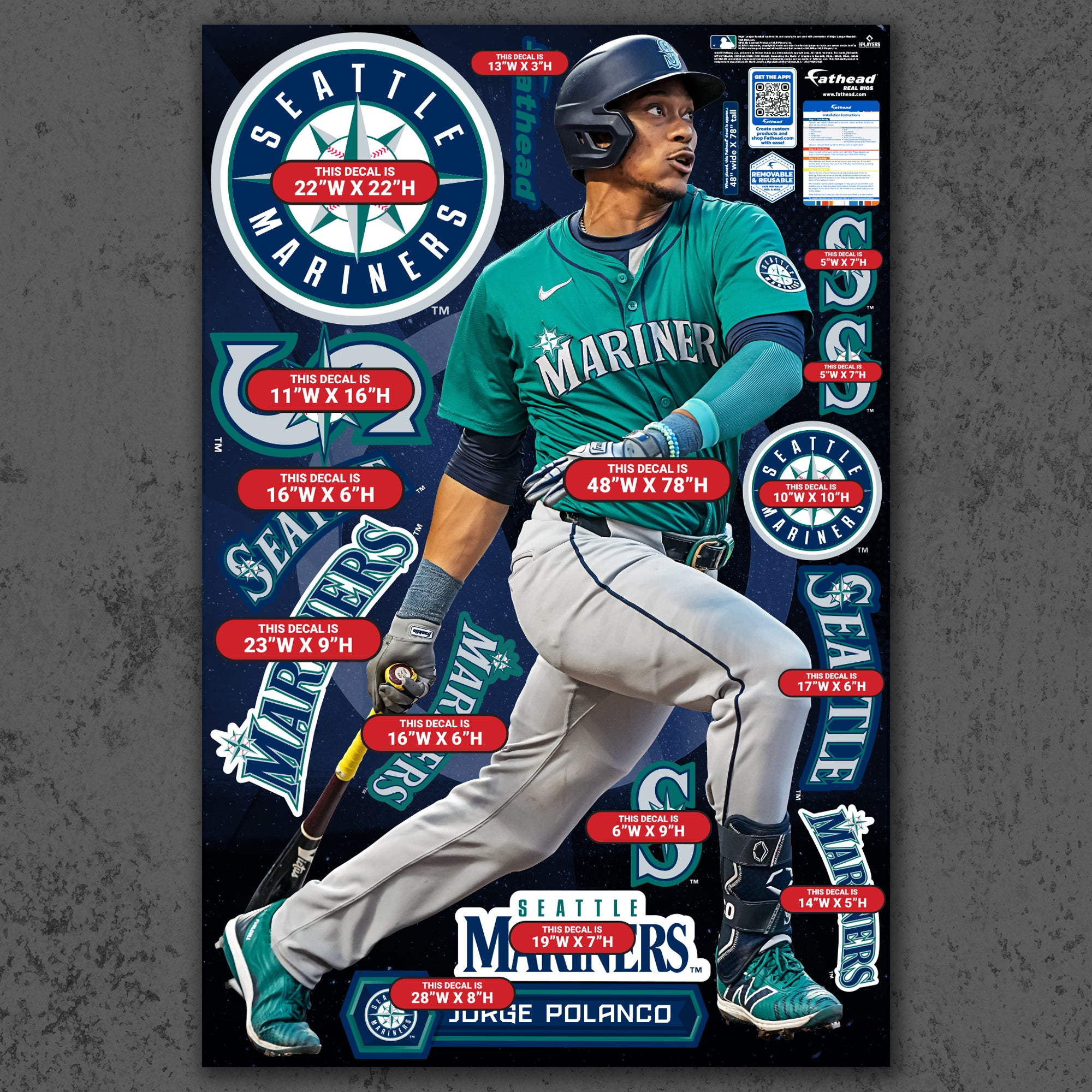 Official MLB Seattle Mariners Reusable Vinyl Wall Decals