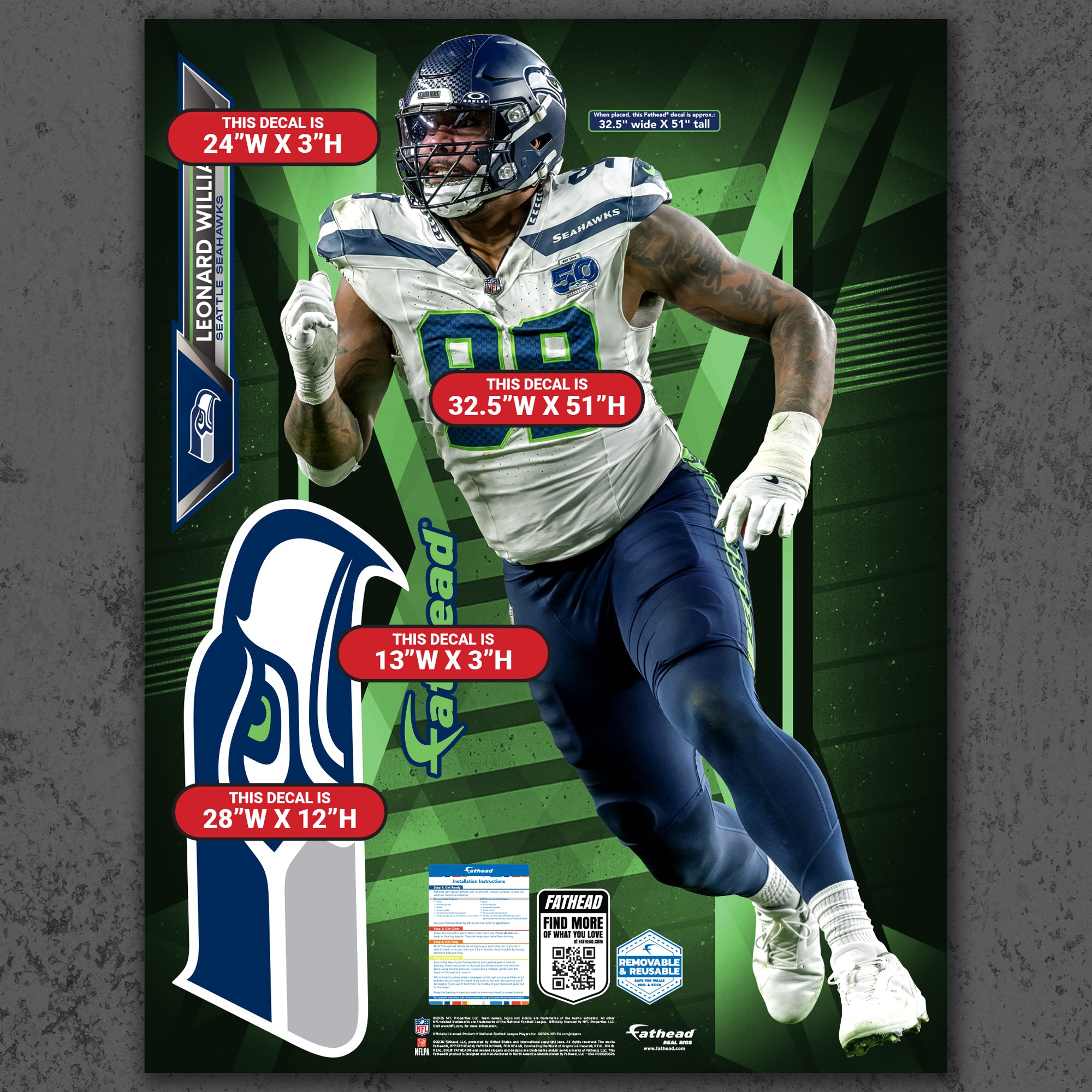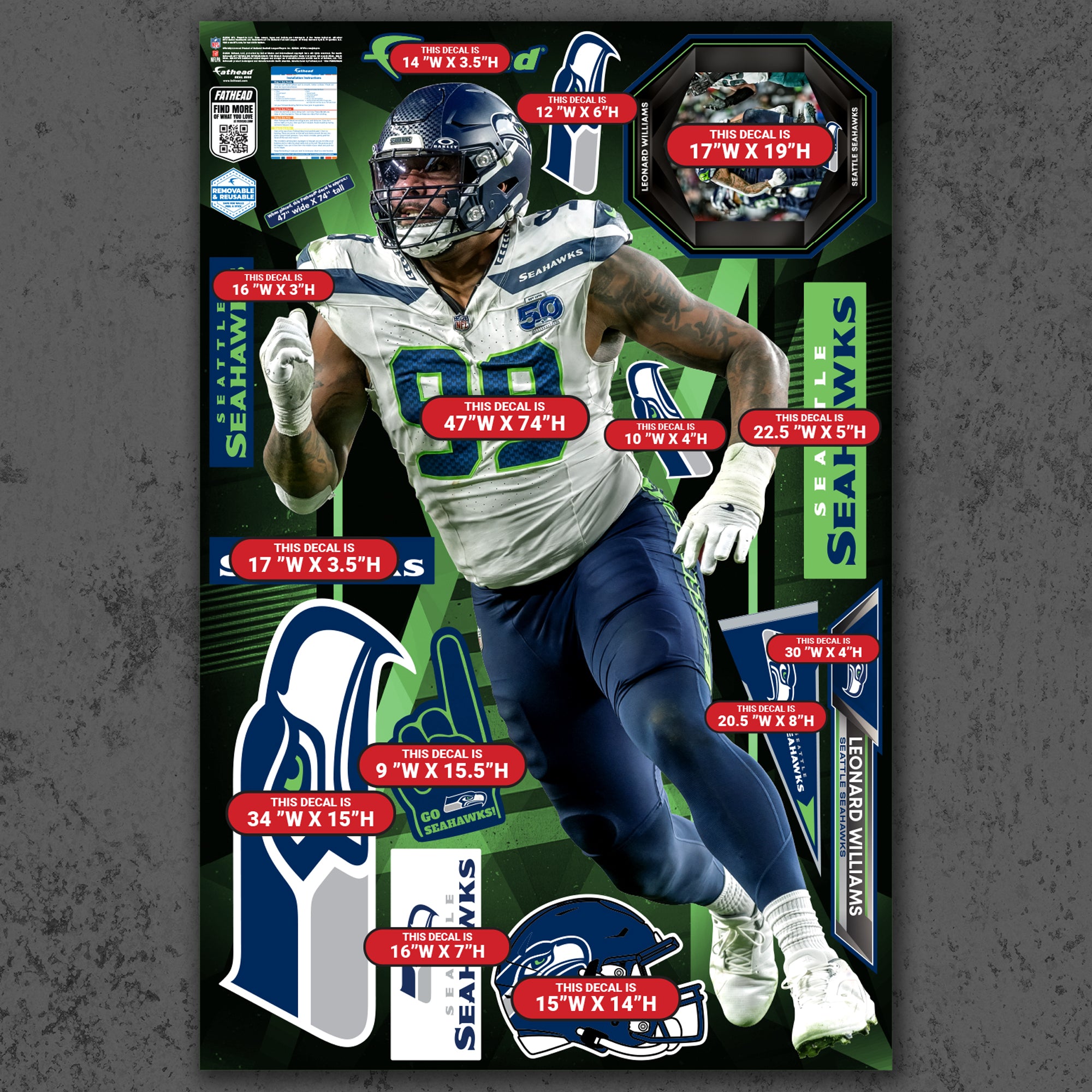 Official NFL Seattle Seahawks Reusable Vinyl Wall Decals