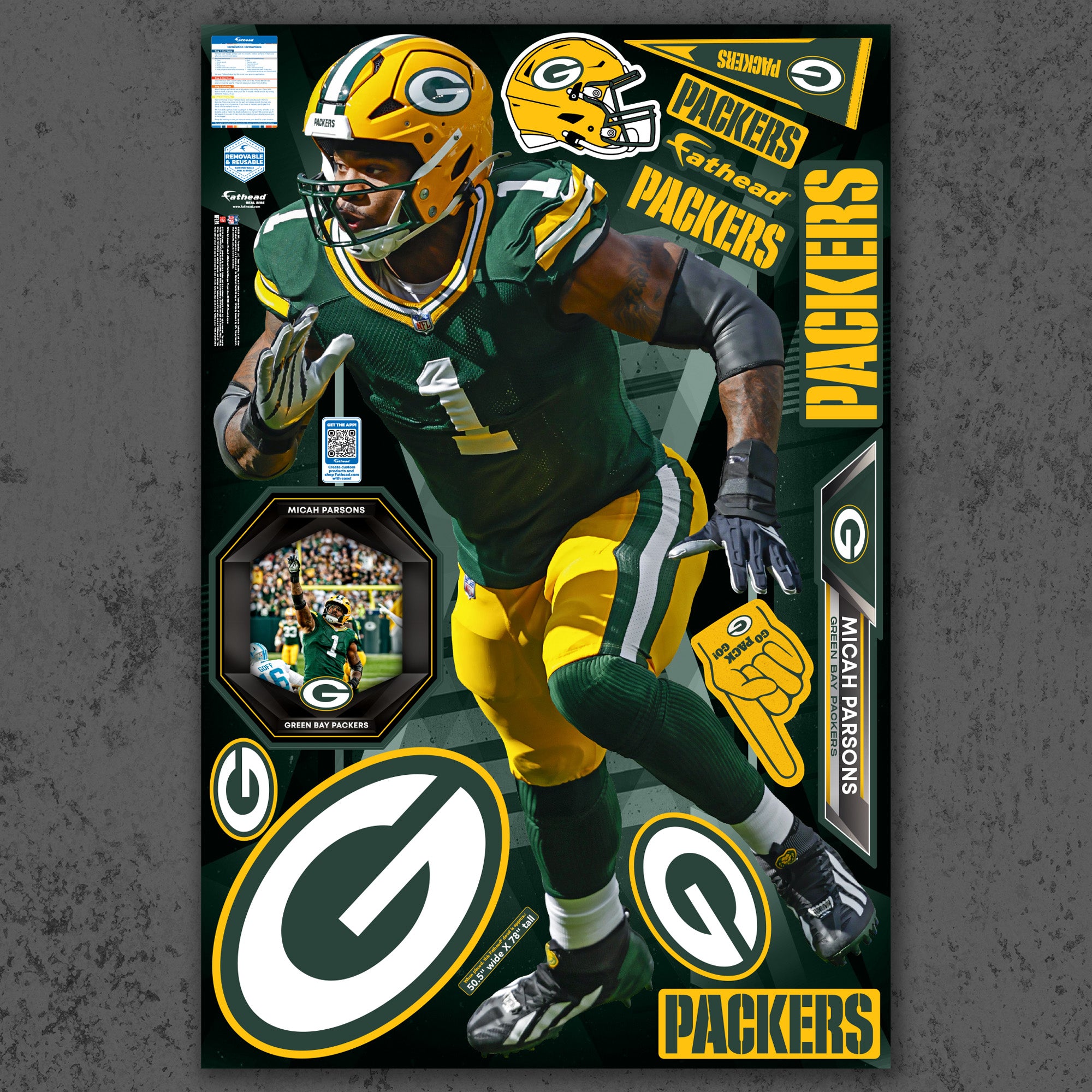 Official NFL Green Bay Packers Reusable Vinyl Wall Decals