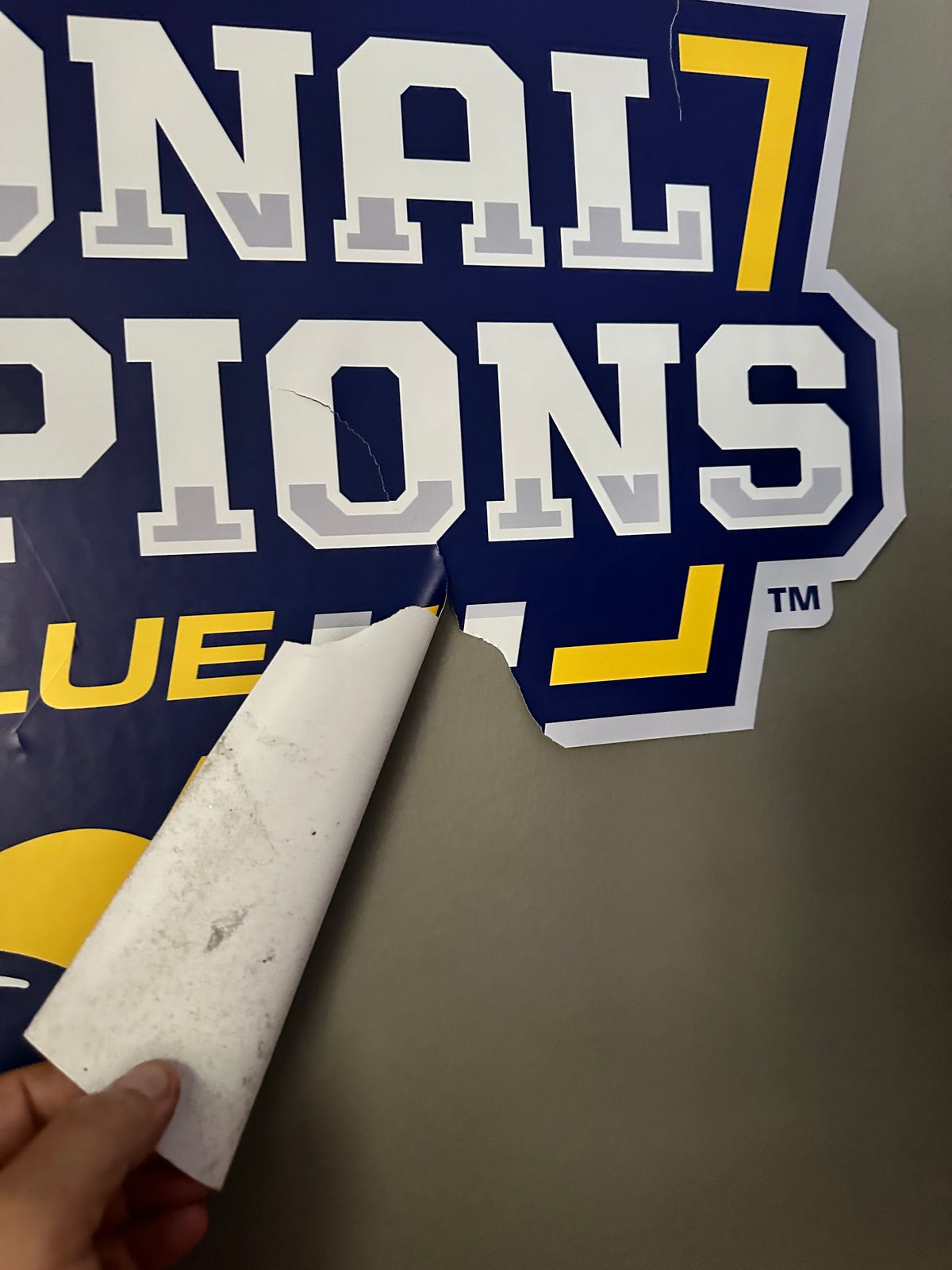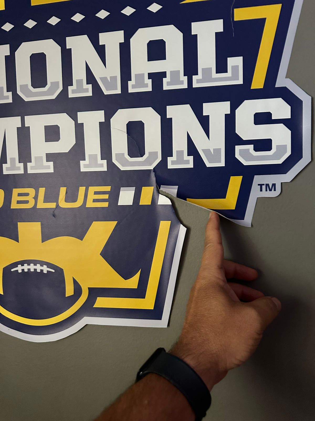 When I received my Michigan banner from Fathead, I was thrilled and eager to hang it up. Unfortunately, while unpacking it, I encountered some sharp corners, and one of them split, tearing the banner. Although it was my fault, I tried to make the best of the situation.