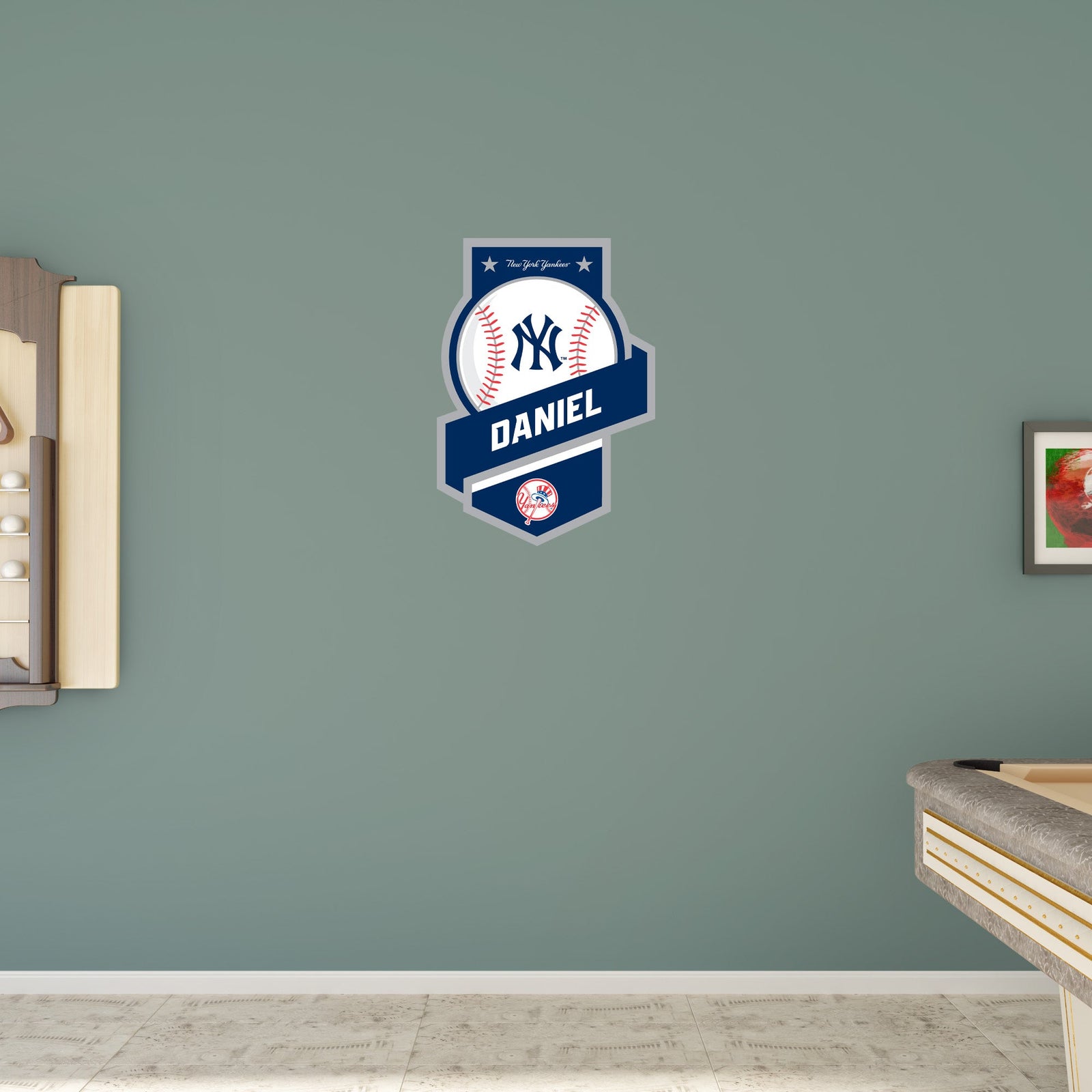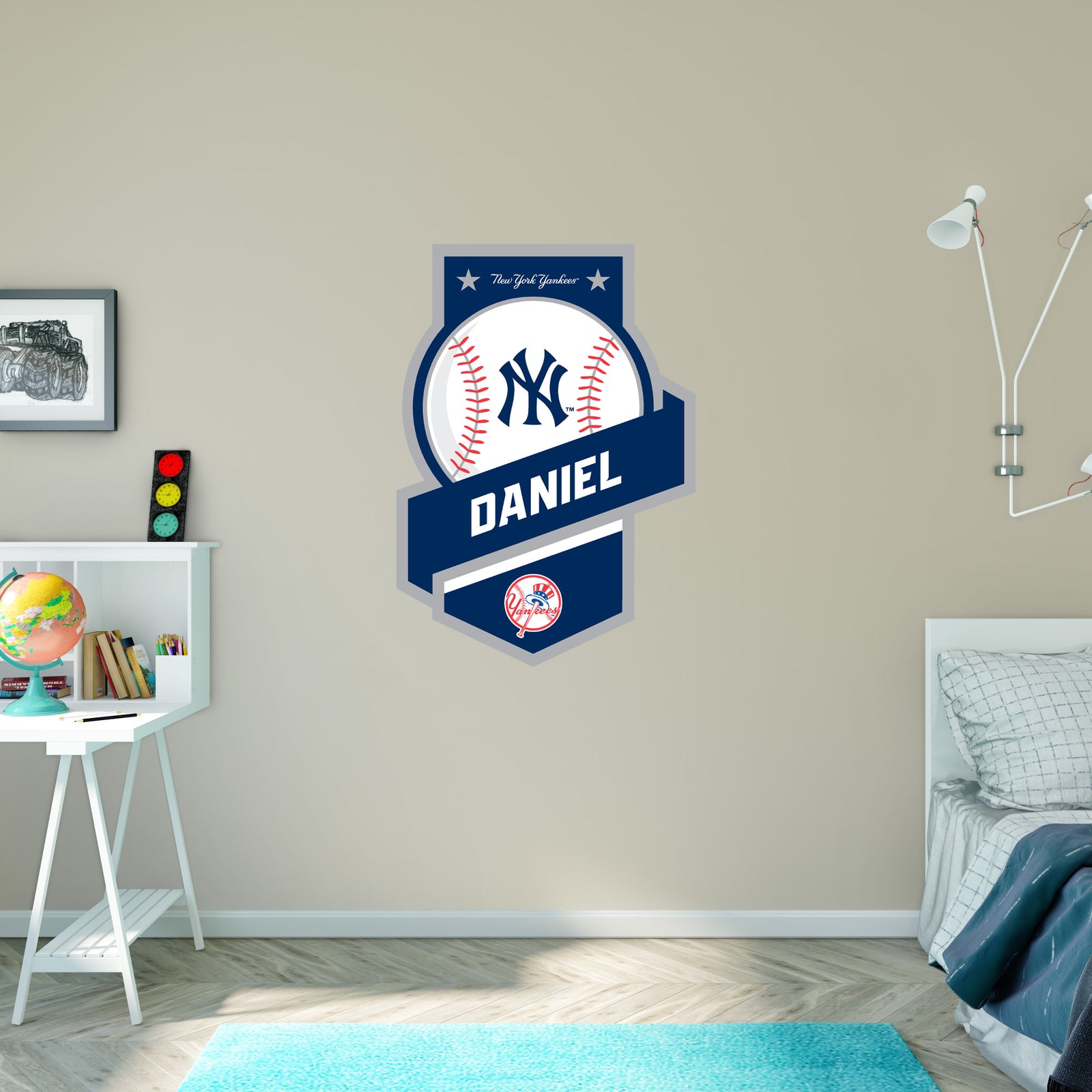 4. STICK one corner of your Fathead to the wall with minimal pressure and apply outwards from there. If you make a mistake, you can unpeel and try again.
