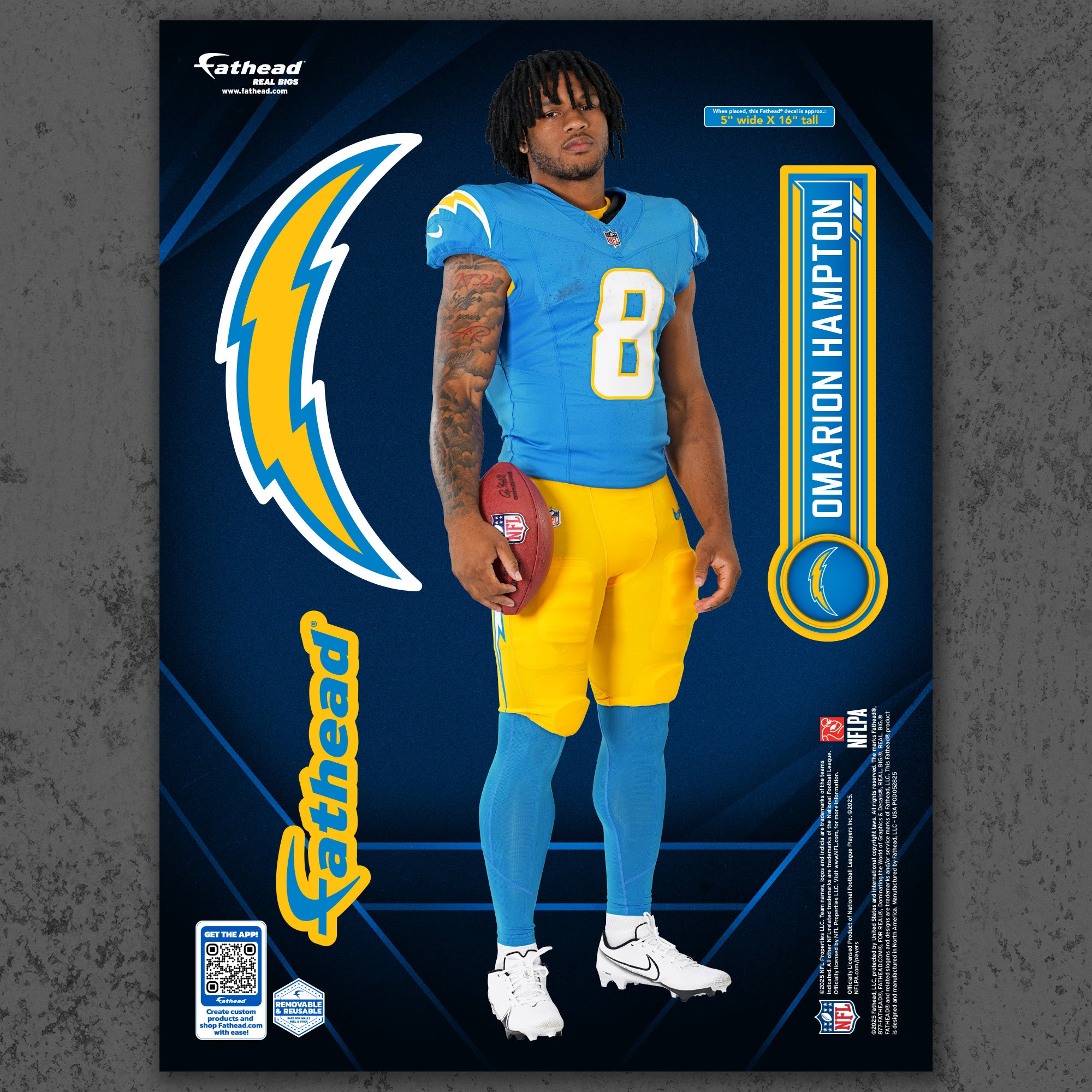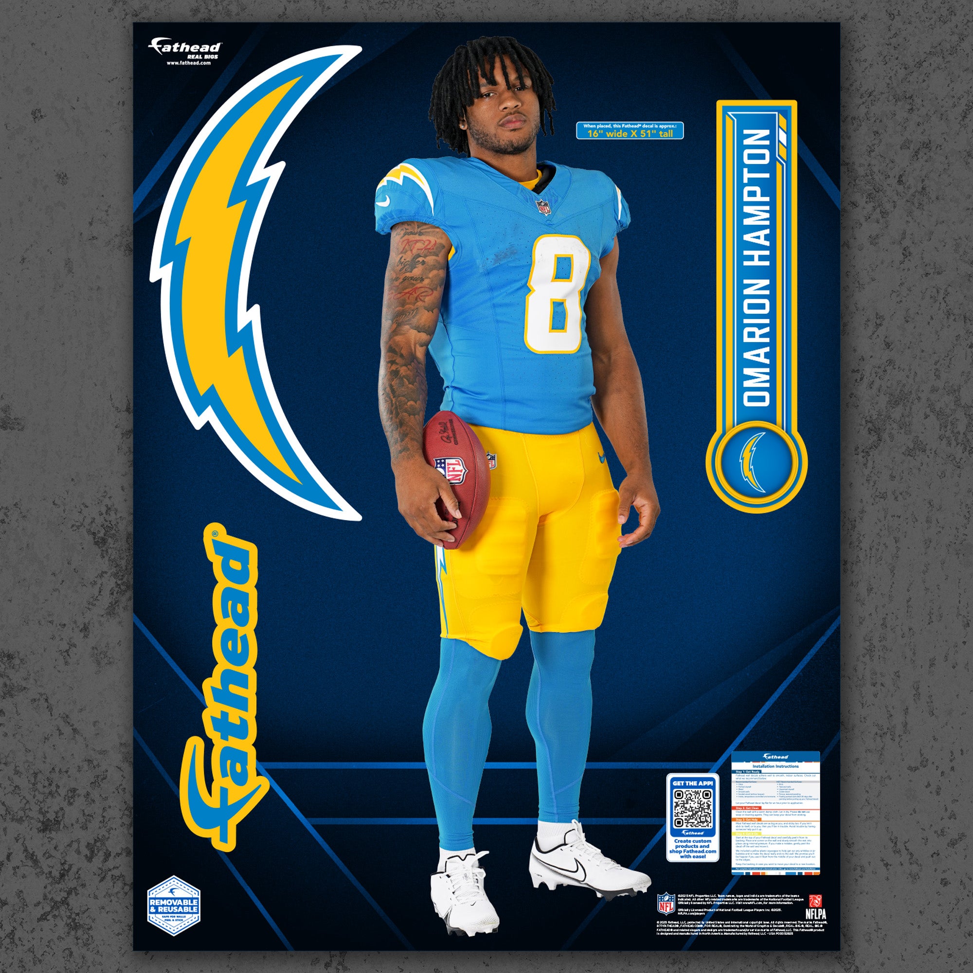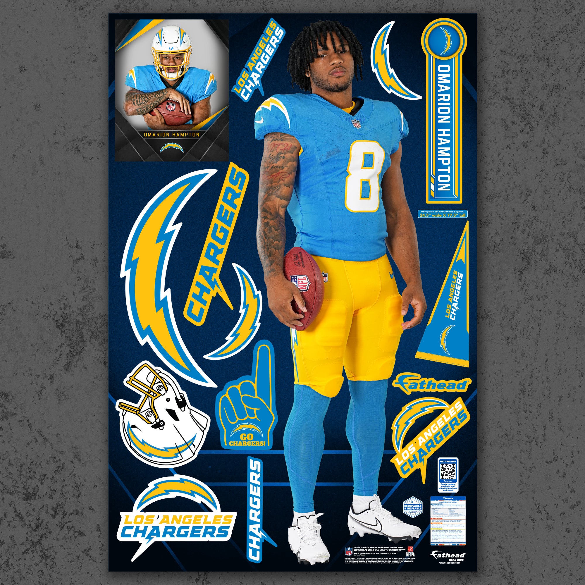 Official NFL Los Angeles Chargers Reusable Vinyl Wall Decals