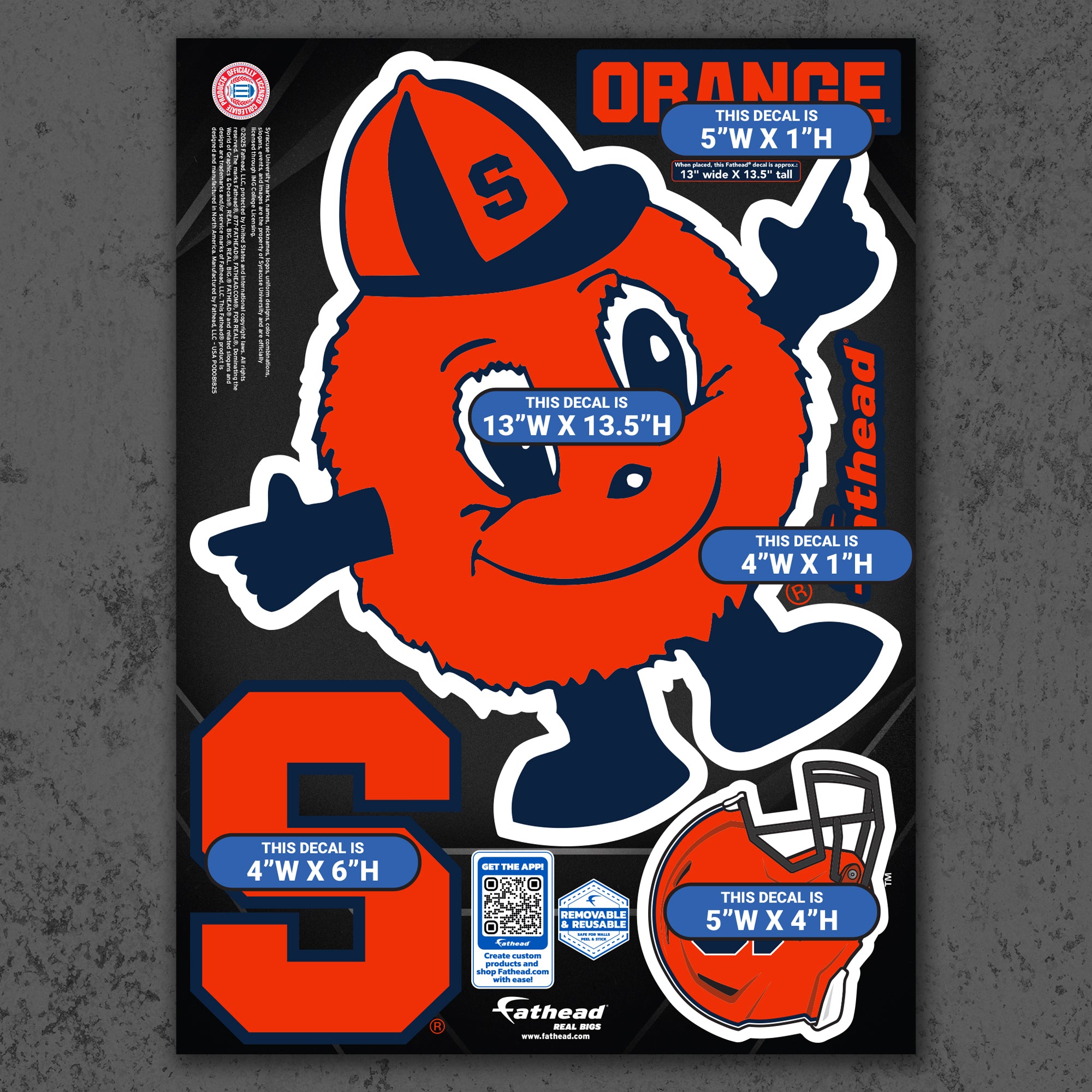 Official NCAA Syracuse Orange Reusable Vinyl Wall Decals