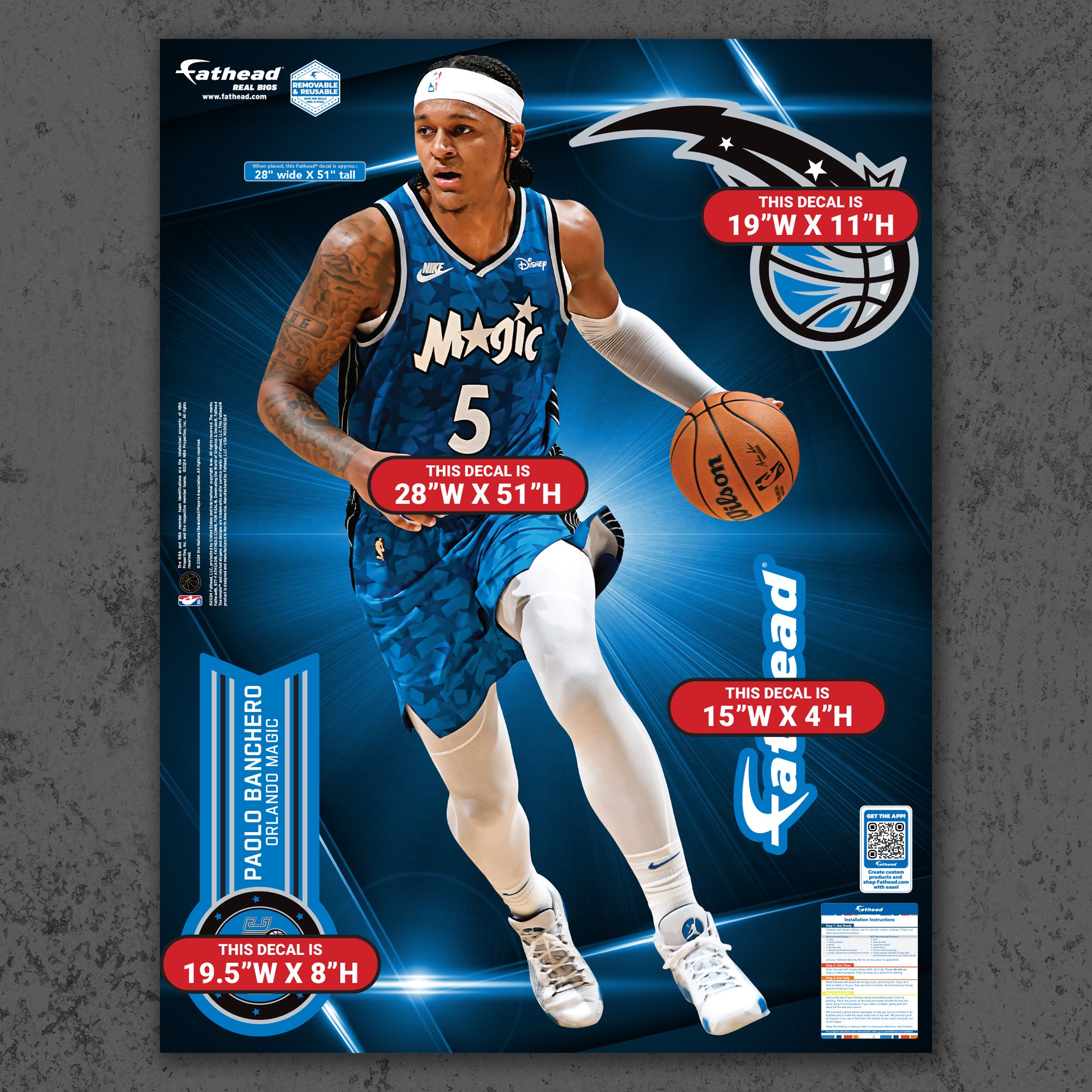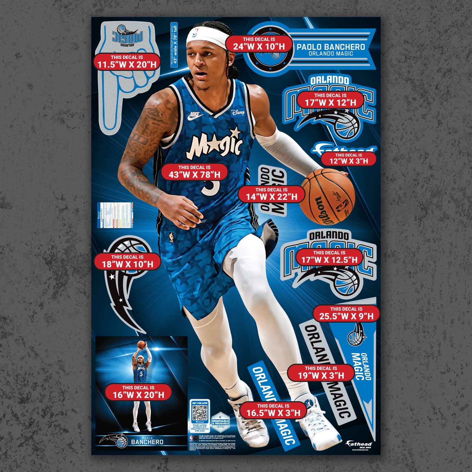Official NBA Orlando Magic Reusable Vinyl Wall Decals