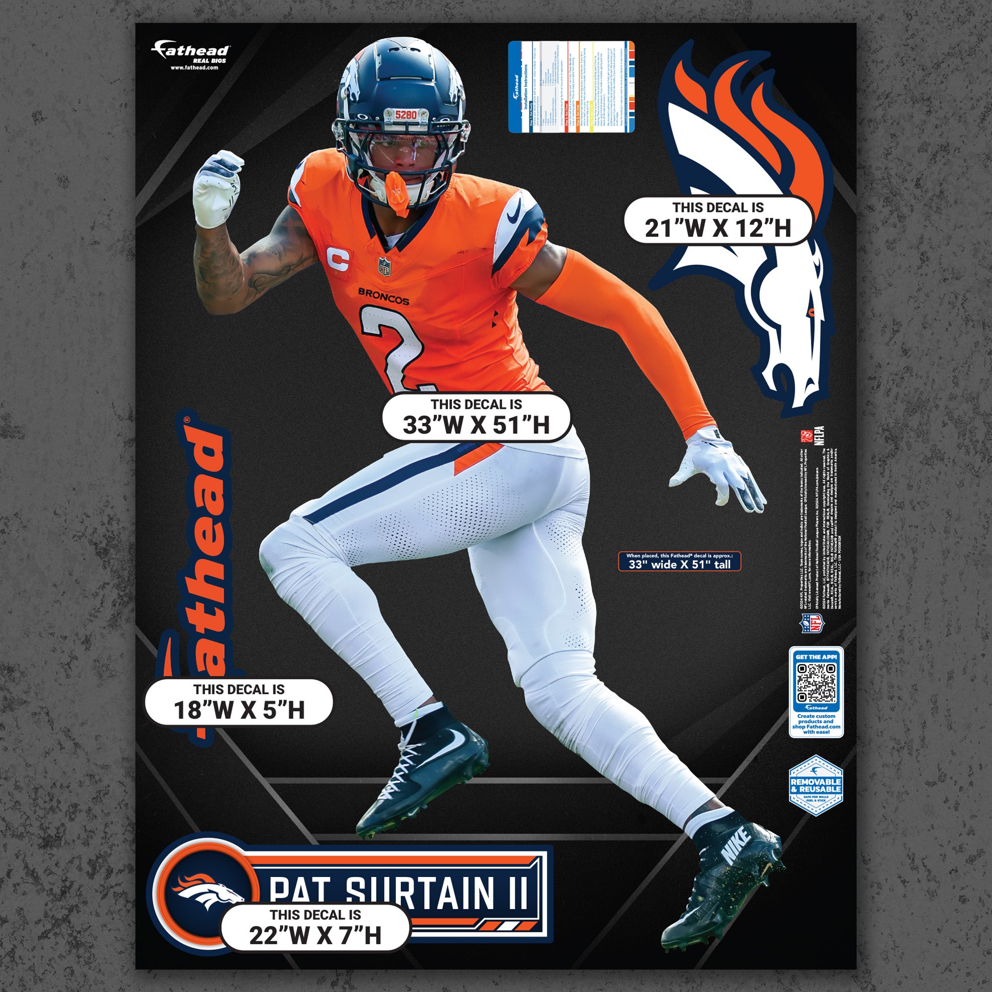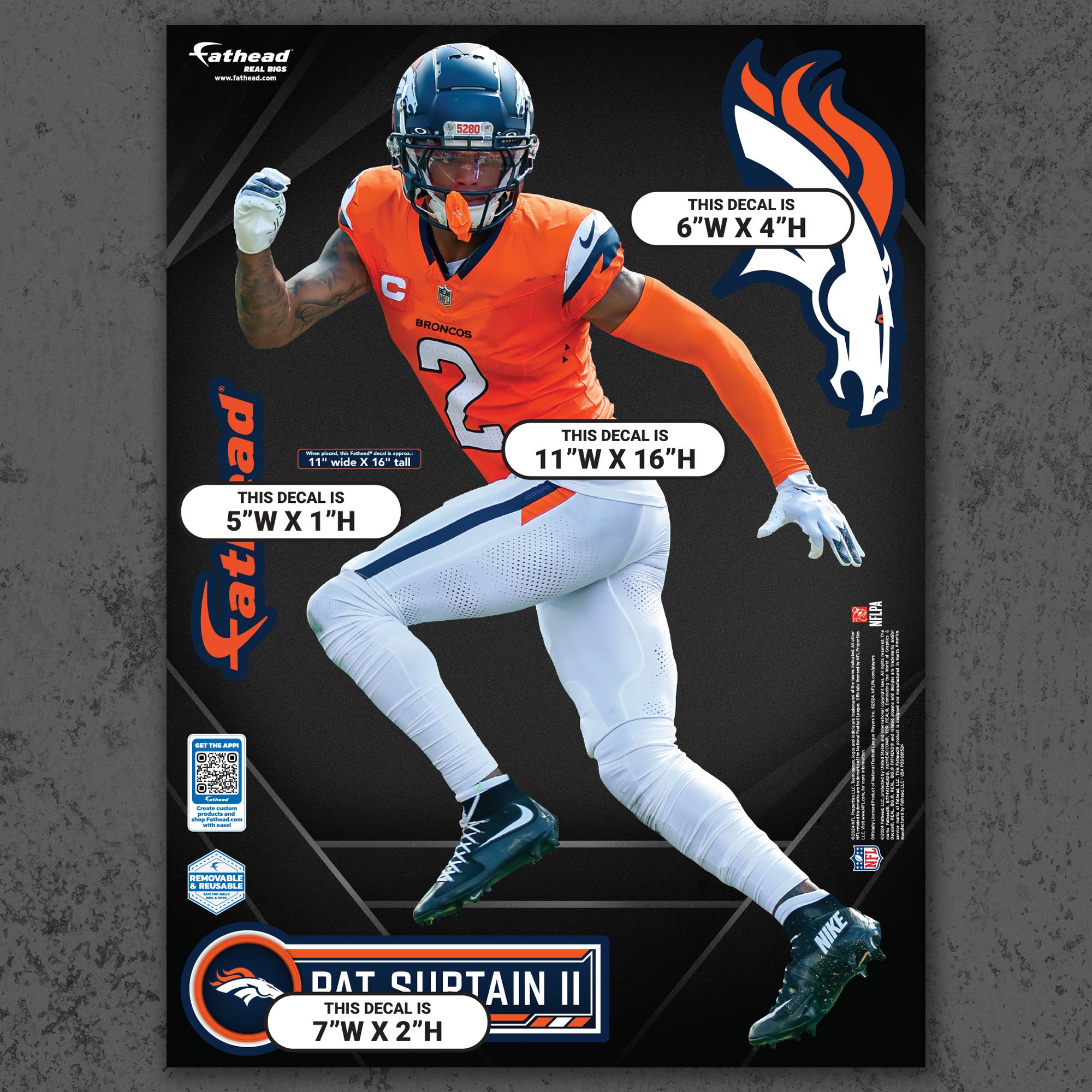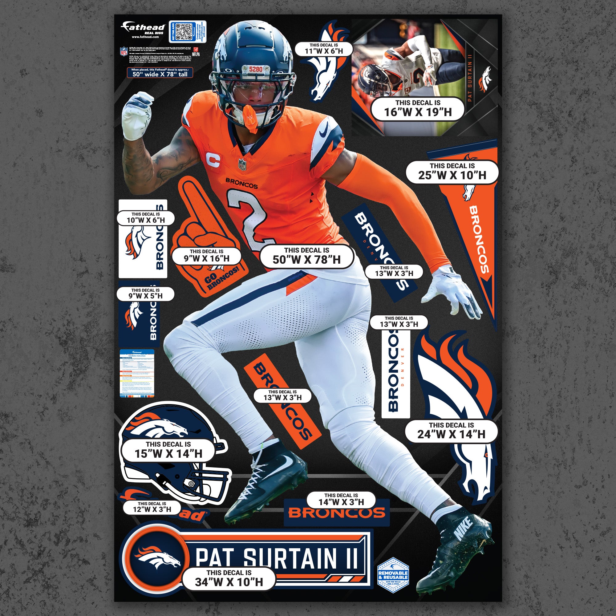 Official NFL Denver Broncos Reusable Vinyl Wall Decals