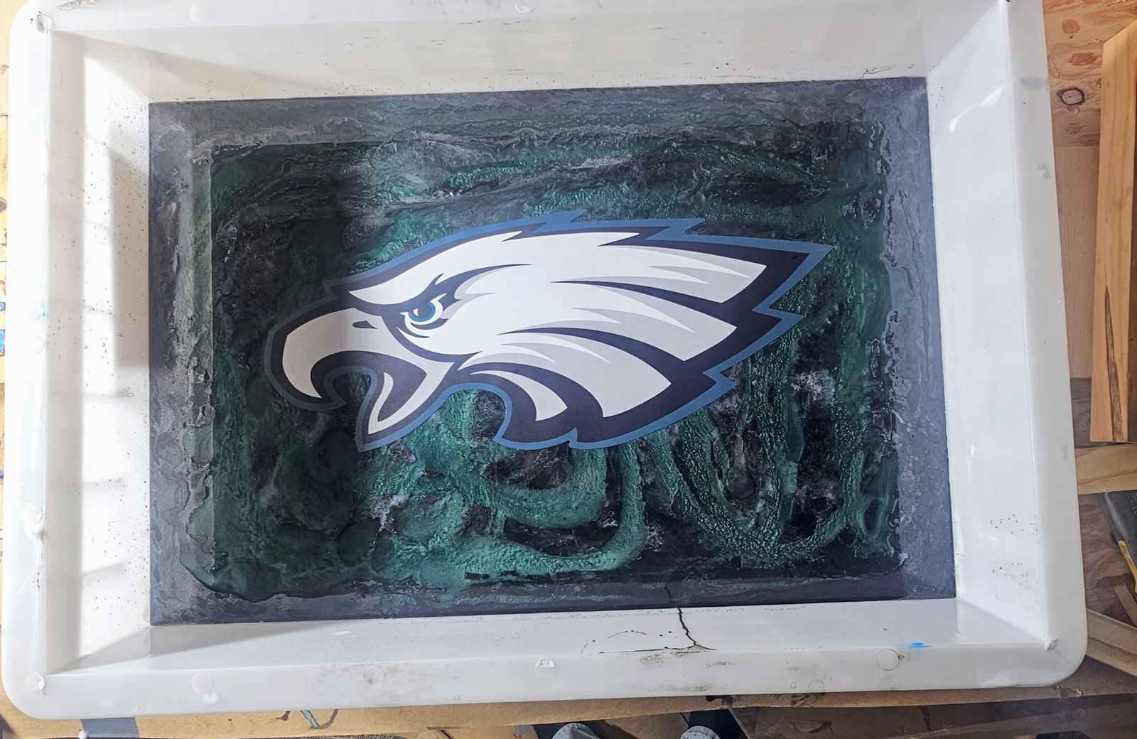 I was very excited to display my Eagles Fat Head in the cave. I waited for about 2 weeks for it to come.. When it arrived I was not disappointed... I also got a Devonta Smith Fathead .. Oh Buddy Boy!!! That thing is Sweet!! Posters are a thing Of the Past.. grab one up..