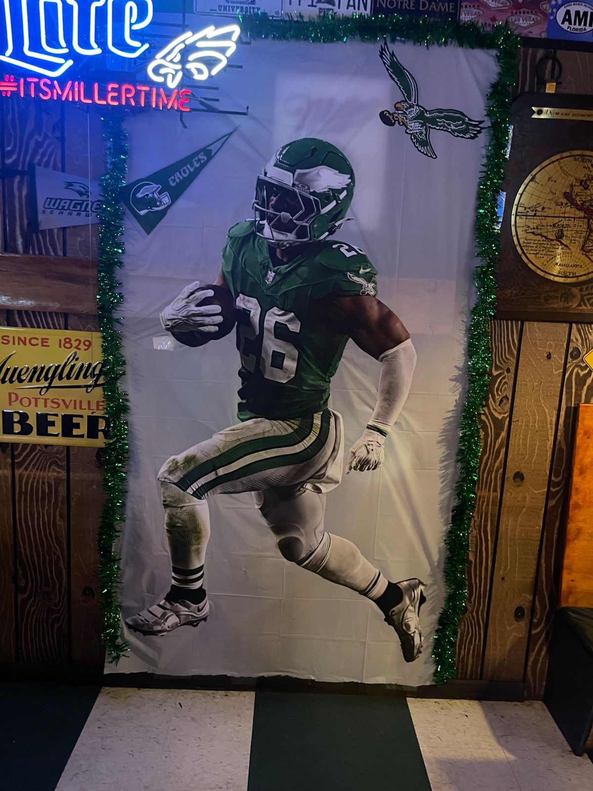 Hung this up and all our guest took pictures with Saquon before the Super Bowl!! It was an even bigger hit after we won the Super Bowl!! GO EAGLES! 🦅