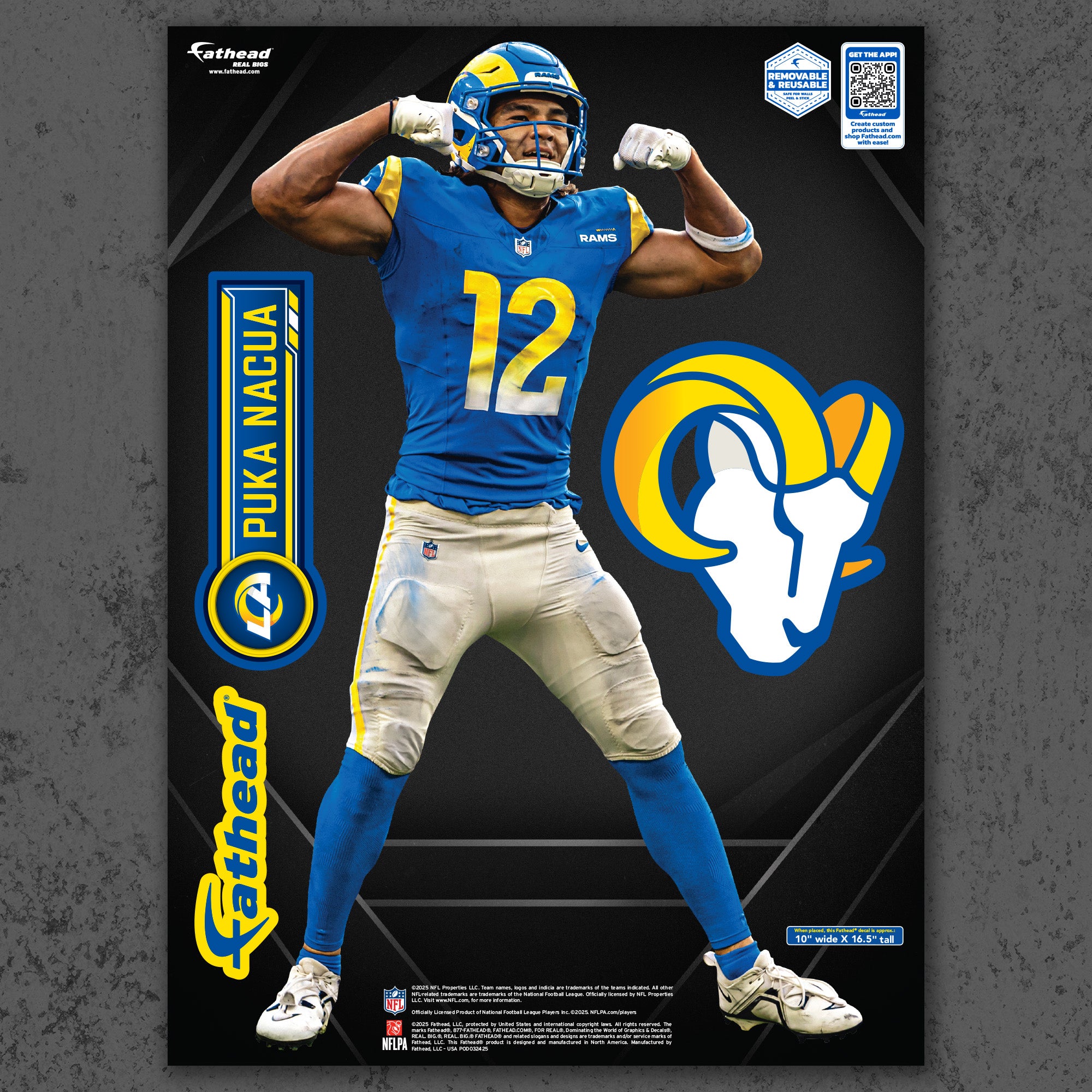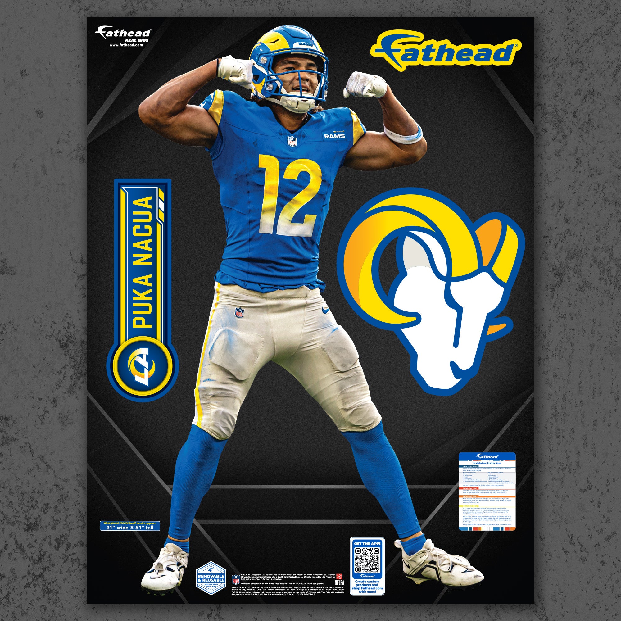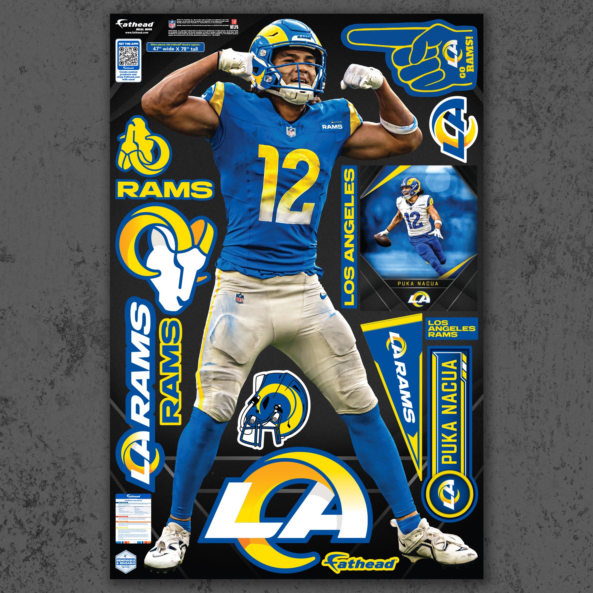 Official NFL Los Angeles Rams Reusable Vinyl Wall Decals