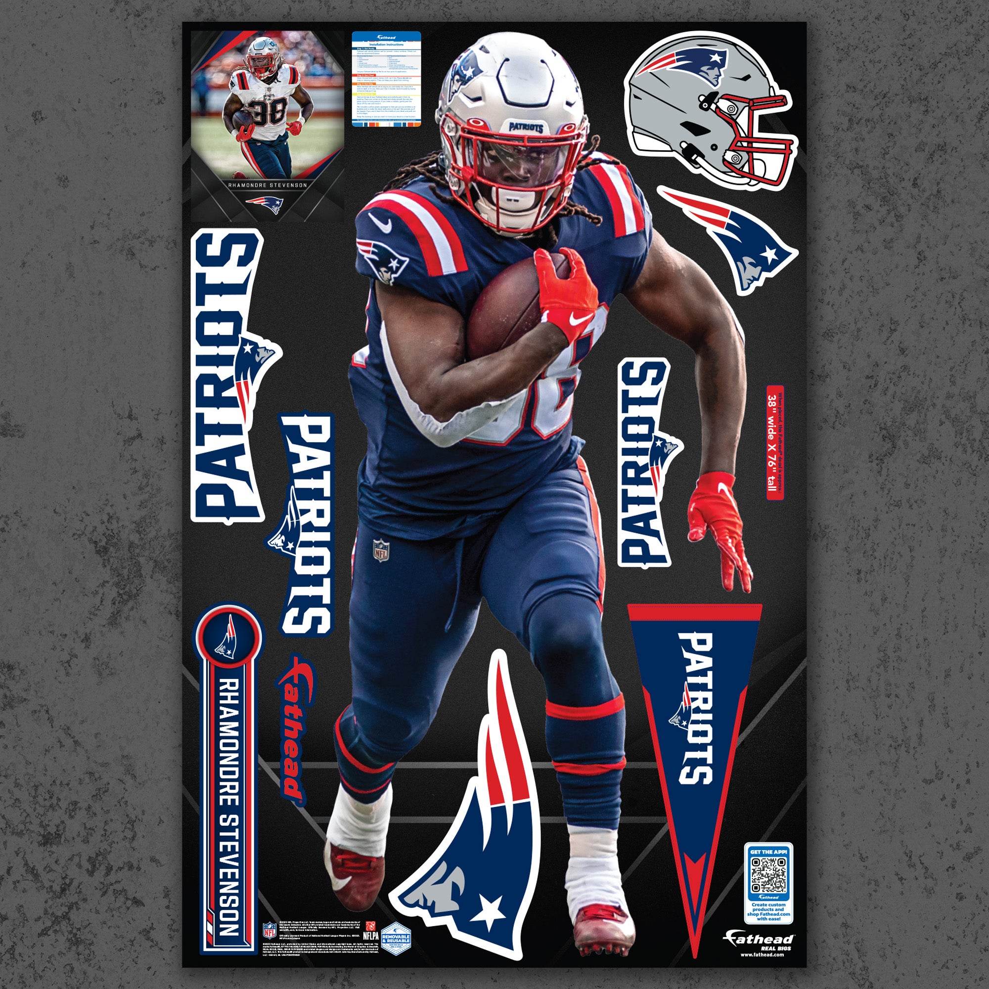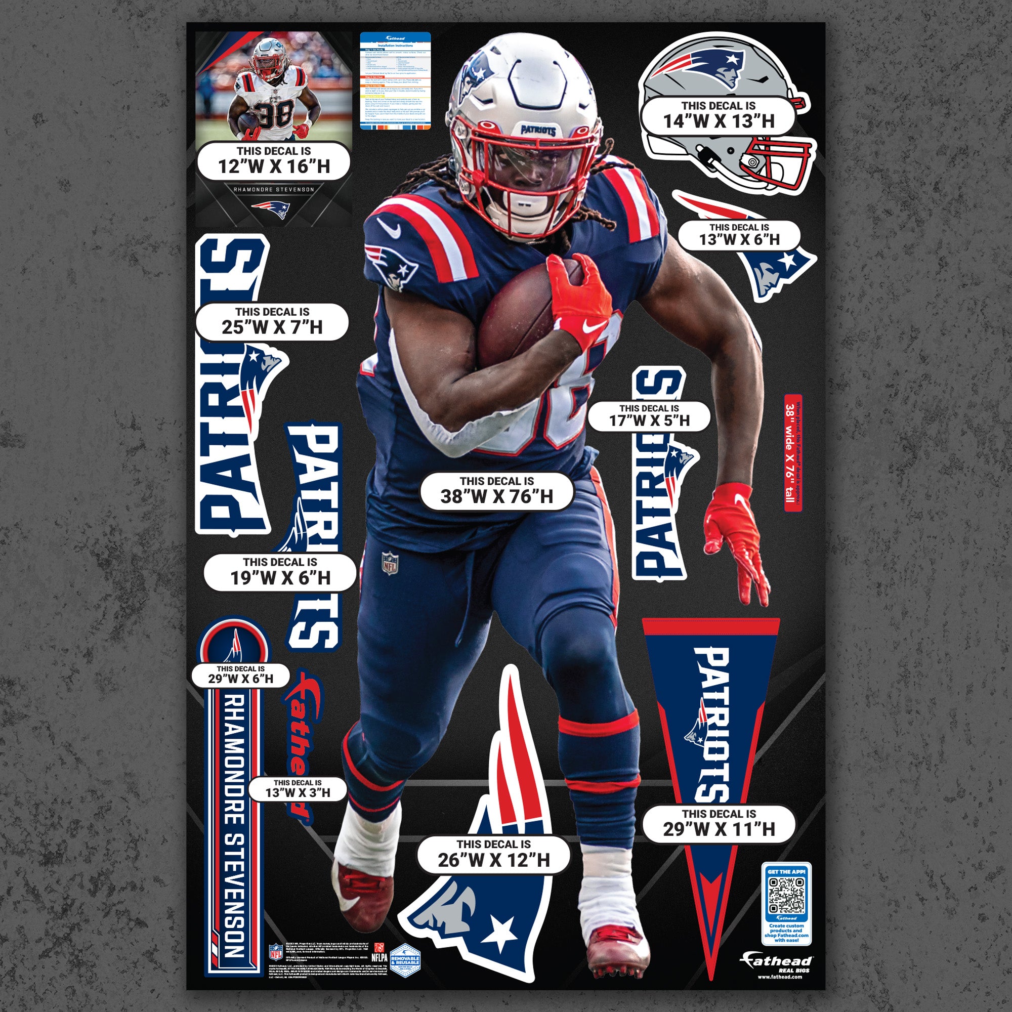 Official NFL New England Patriots Reusable Vinyl Wall Decals