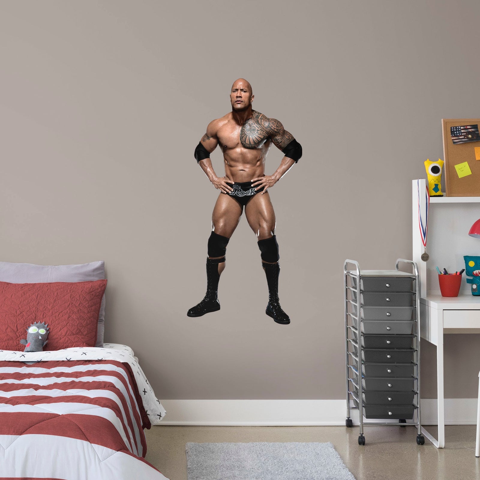 4. STICK one corner of your Fathead to the wall with minimal pressure and apply outwards from there. If you make a mistake, you can unpeel and try again.