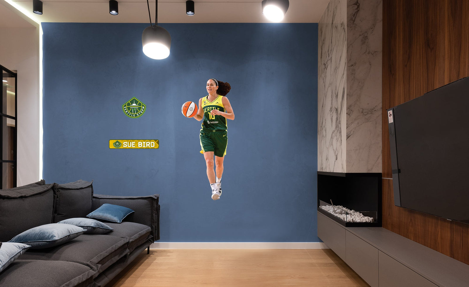 Transform your space with the Sue Bird RealBig Collection, featuring official WNBA Seattle Storm reusable vinyl wall decals. These decals are perfect for fans who want to celebrate their love for the Seattle Storm and Sue Bird in a bold, dynamic way. Crafted from premium vinyl, they offer vibrant, fade-resistant colors that bring your walls to life. The precision die-cut edges ensure a seamless look, while the low-tack adhesive allows for easy application and repositioning without damaging your walls.