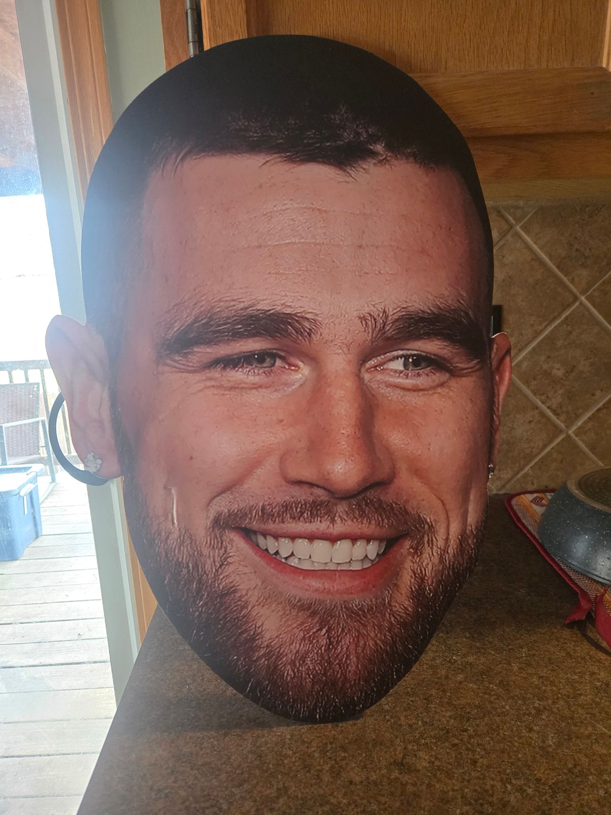 This was a gift for my daughter who is a huge Travis Kelce fan. She absolutely loved the Travis big head. She is going to put it up in her workout room for inspiration.
